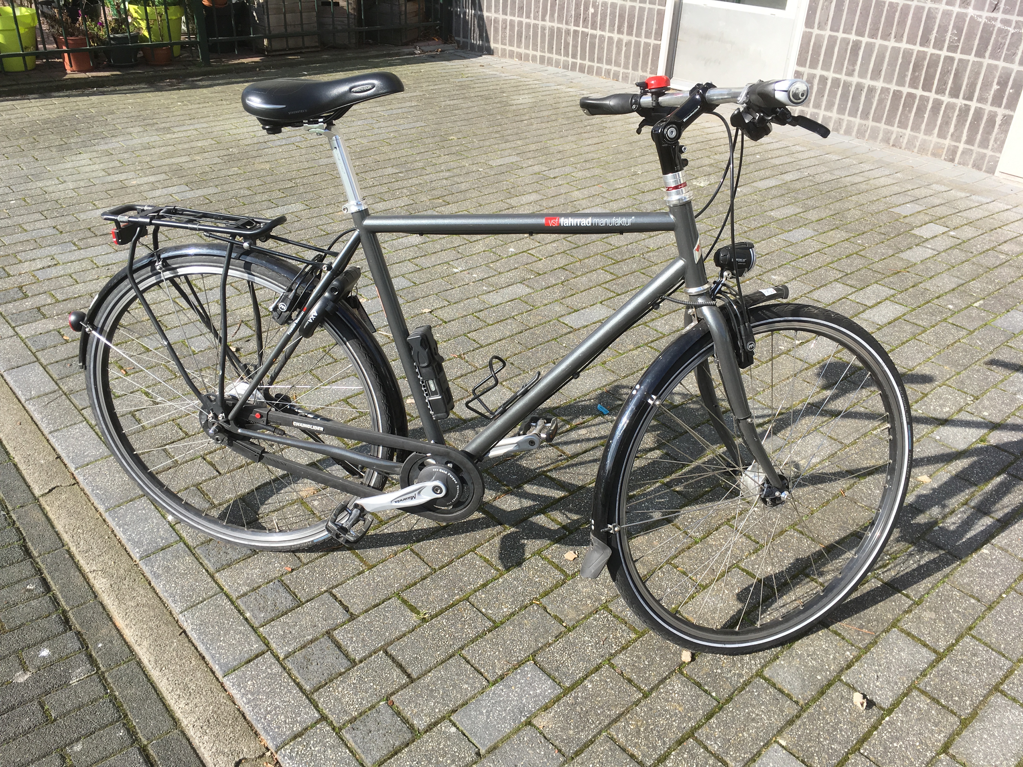 Te koop: een prima onderhouden, grijze VSF T700 met Alfine 11 naaf, inclusief chainglider. De fiets is ongeveer vijf jaar oud, heeft zo'n drieduizend kilometer gereden, heeft net een gloednieuwe Schwalbe Marathon achterband en heeft nieuwe olie in de 11-versnellingen naaf. Magura remmen, Ergon handvatten, prima verlichting met uiteraard lichtlopende naafdynamo en standlicht. Alles in uitstekende staat, desgewenst met een fors Amsterdams kabelslot erbij. Originele aanschafprijs 1300,- euro, nu voor 650,- euro in de aanbieding. Een uitstekende fiets voor woon-werk verkeer, dagtrips en lichte vakantietochten. Framemaat 57. Zie de website van VSF-Fahrradmanufaktur voor verdere specificaties.