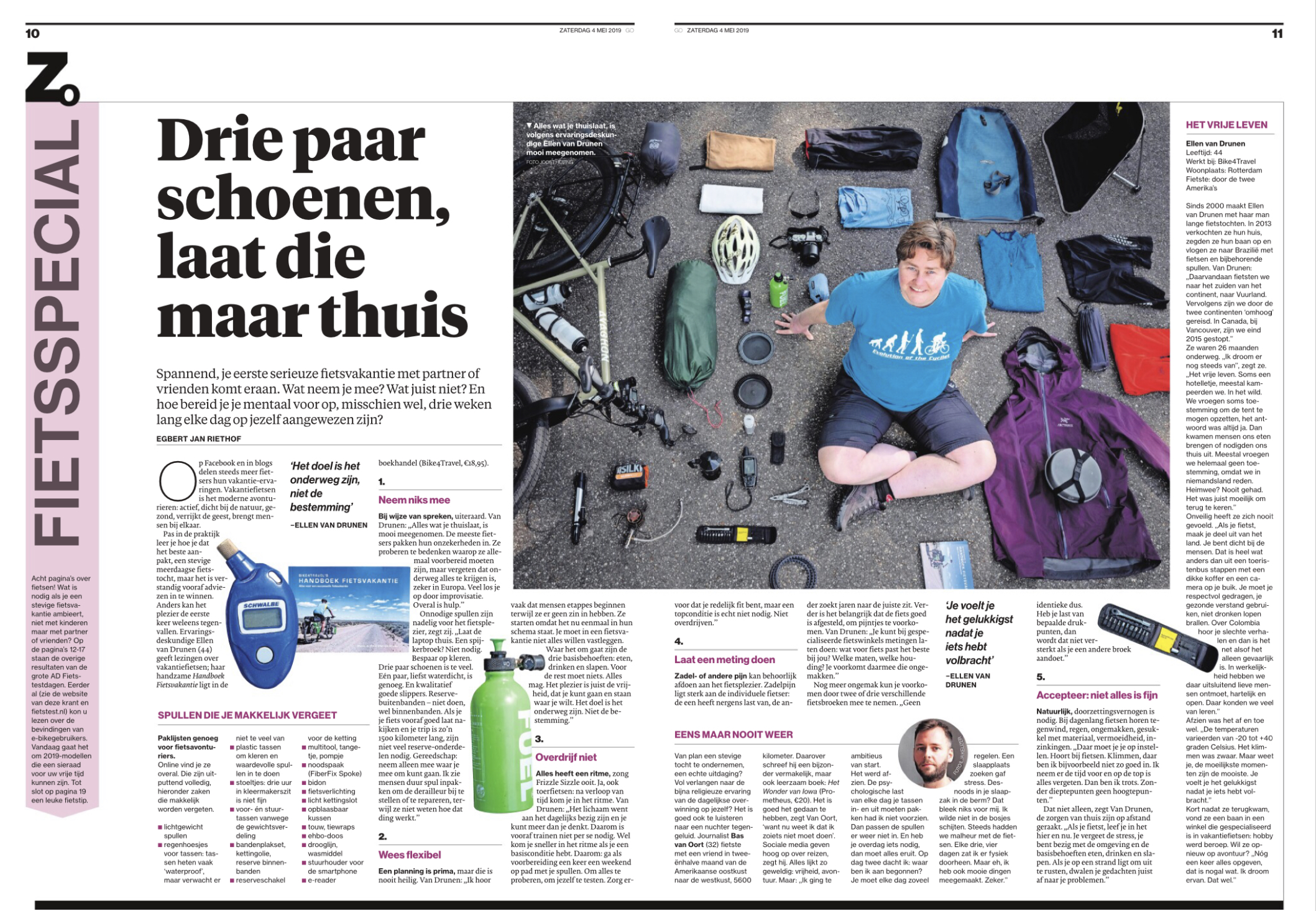 Ellen schreef:"Onnodige spullen zijn nadelig voor het fietsplezier, zegt zij. Laat de laptop thuis"