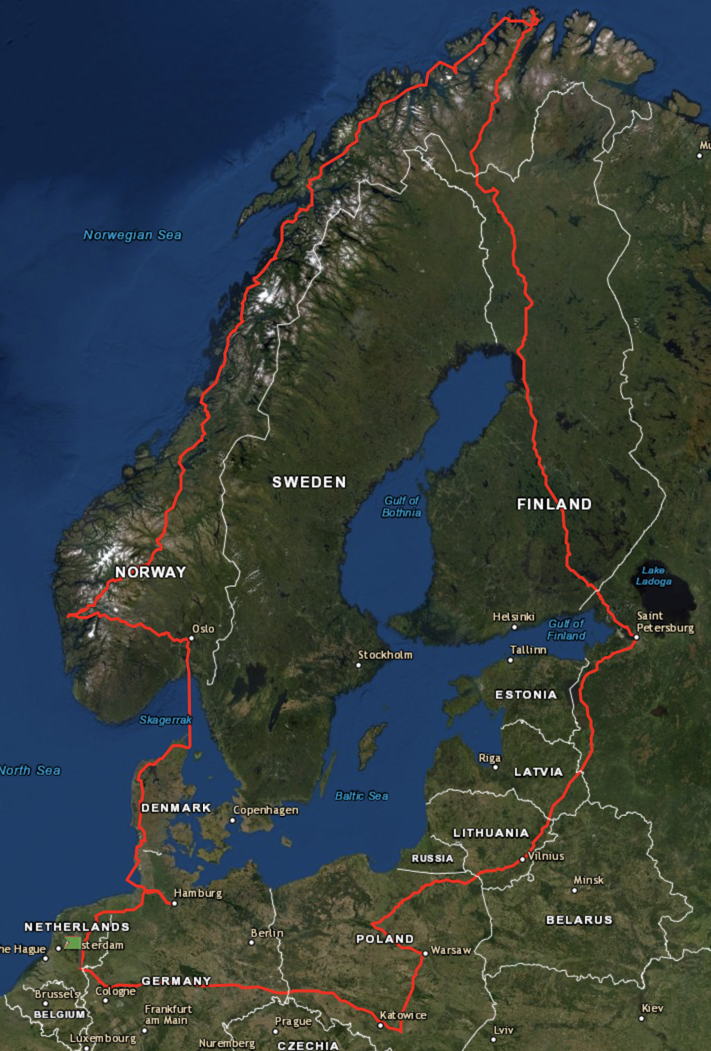 Ambitieus plan voor 2020. Zoveel mogelijk over/langs de Noorse fjorden en door de binnenlanden/merengebied (denk de route daar wat meer rechts) van Finland. Idee is om ergens begin mei te vertrekken, eind juli - medio augustus weer terug. Afstand kleine 9000 km. Let wel: de route is maar globaal. Graag tips/adviezen.