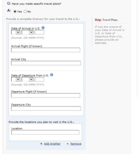 Ik heb zojuist gekeken wat het formulier DS-160 vraagt.