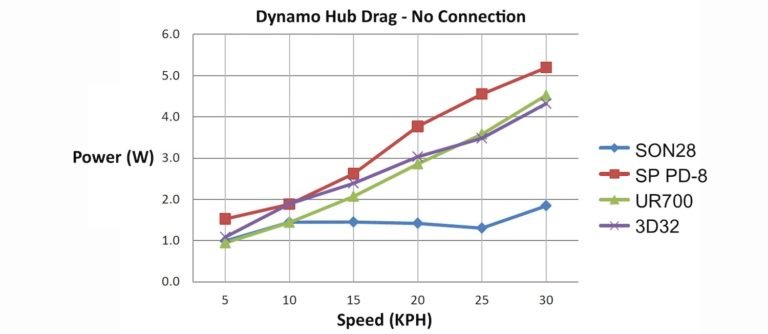 dat beantwoordt jouw vraag niet, sorry. ik denk dat ik bij een ruim banksaldo voor een duurdere naaf zou gaan en anders voor de nodige duizenden kilometers plezier zou hebben van zo'n Shimano naafShimano makes the majority of the world’s dynamo hubs, so it’s safe to say that they know a thing or two about them. The lab testing shows 0.50w-2.50w drag (@ 10-30km/h) when a light is switched off, and 3.50w-7.50w drag when a light is switched on. This is only marginally higher than the Schmidt and SP hubs which are often more than twice the price.