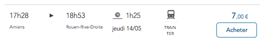 Van Amiens naar Rouen is € 7,--, van Rouen naar Yvetot is € 5,-- en van Amiens naar Yvetot is € 27,10 .... wie snapt zoiets?