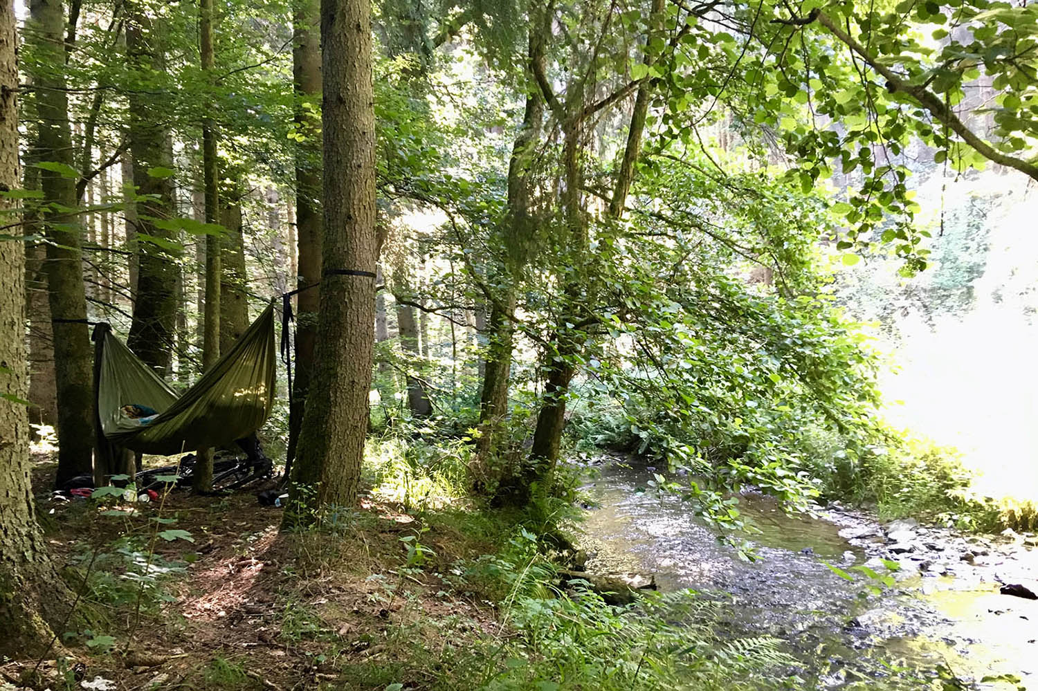 Sinds een paar jaar geniet ik van het fietskamperen met een hangmat. Ik heb op mijn website een stukje geschreven over hoe ik in de hangmatwereld ben gerold en hoe ik er ben blijven hangen.