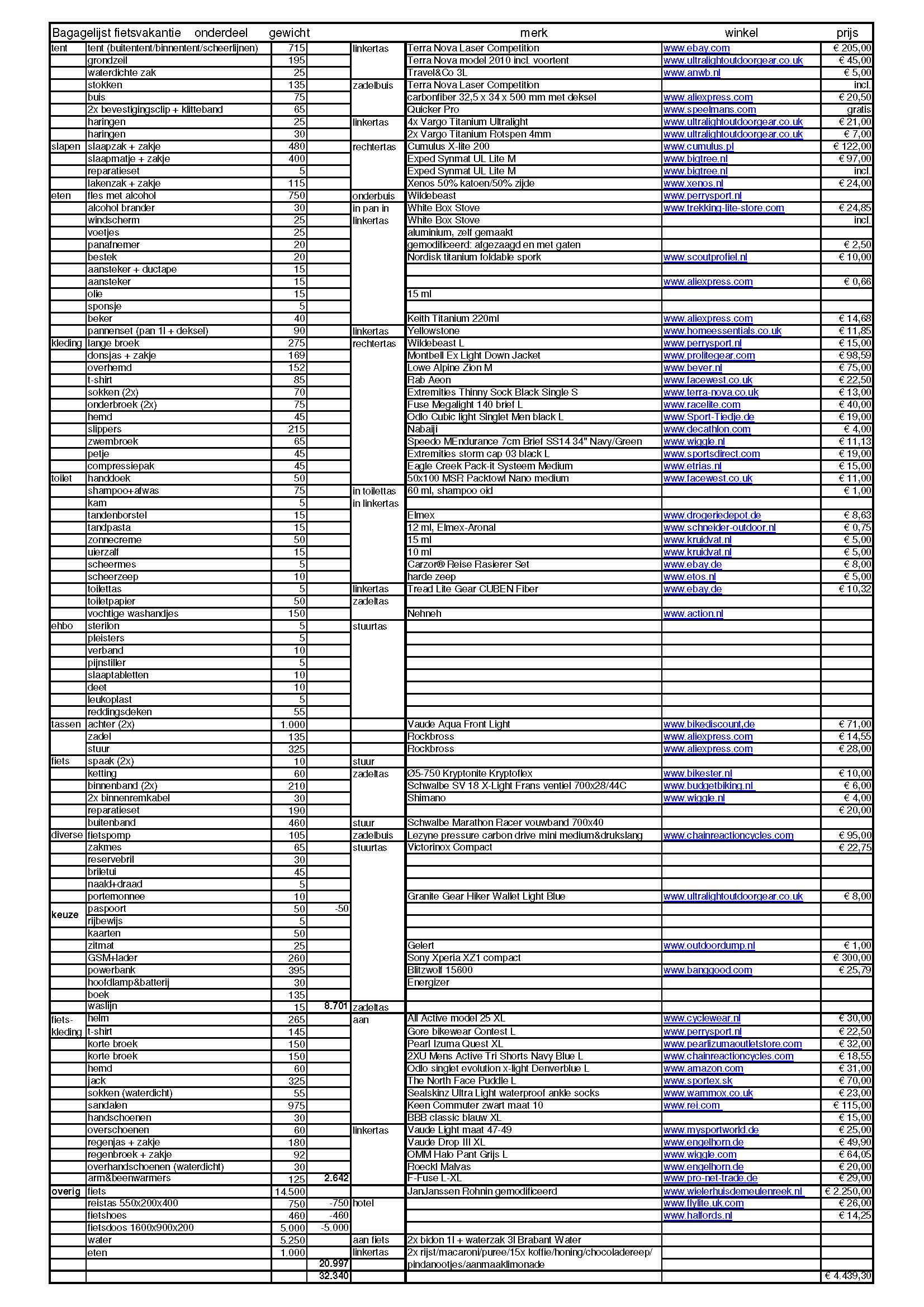 Laatst ging het er al over in een ander topic. Misschien wel eens leuk om weer eens een nieuw paklijst topic te beginnen. De ontwikkelingen staan ook niet stil, tijd voor een nieuw topic met frisse paklijsten. Ik heb altijd een hoop geleerd van de lijstjes van andere mensen.