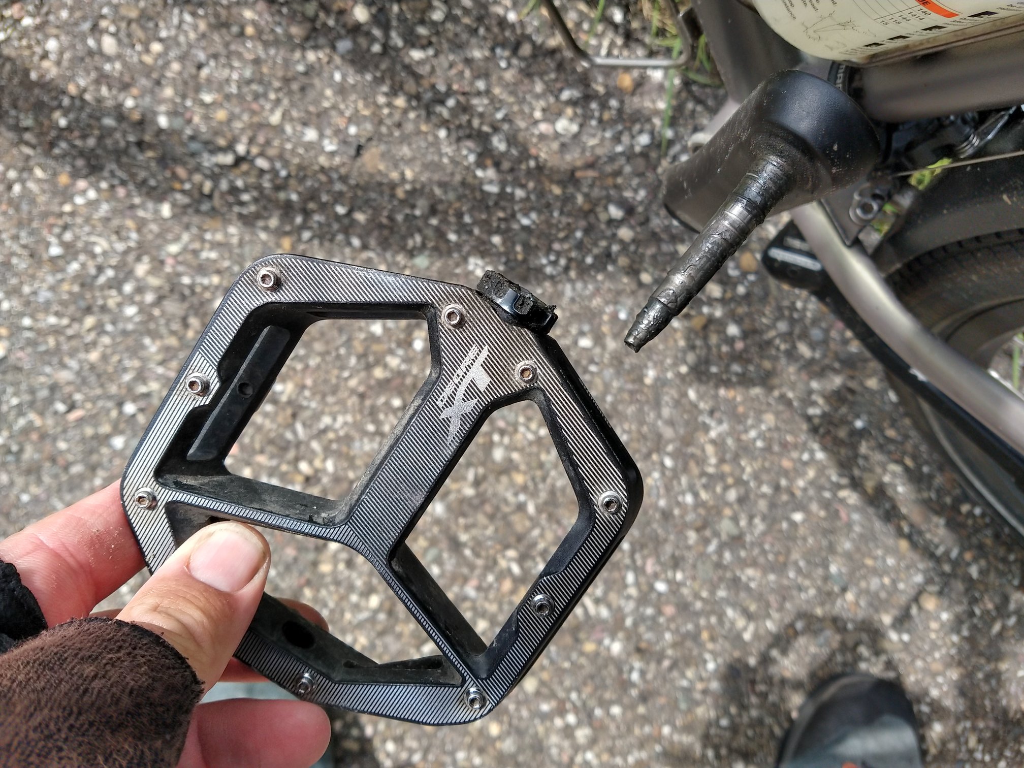 Die linker is van het pedaal dat nog heel was.