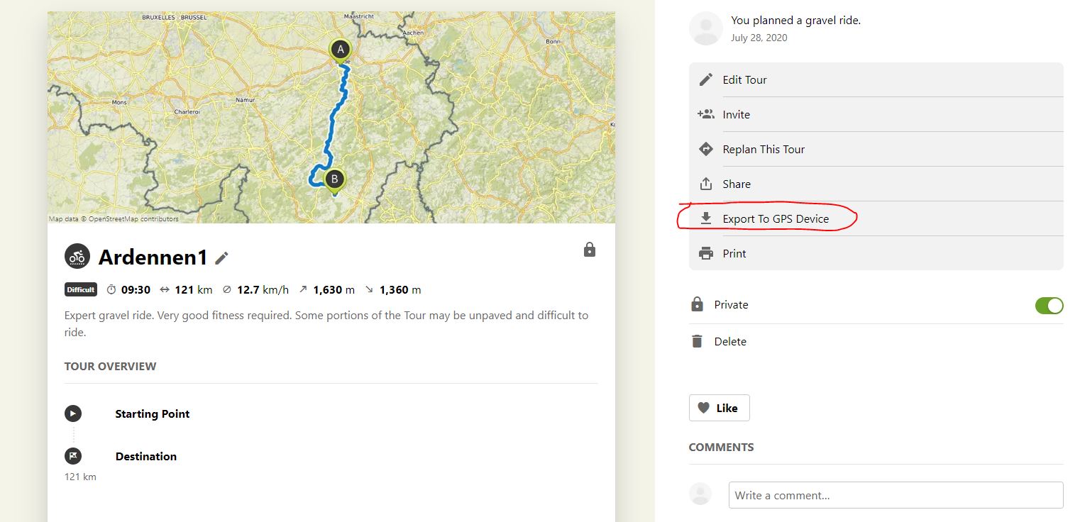 Voor het eerst een route gepland in Komoot.