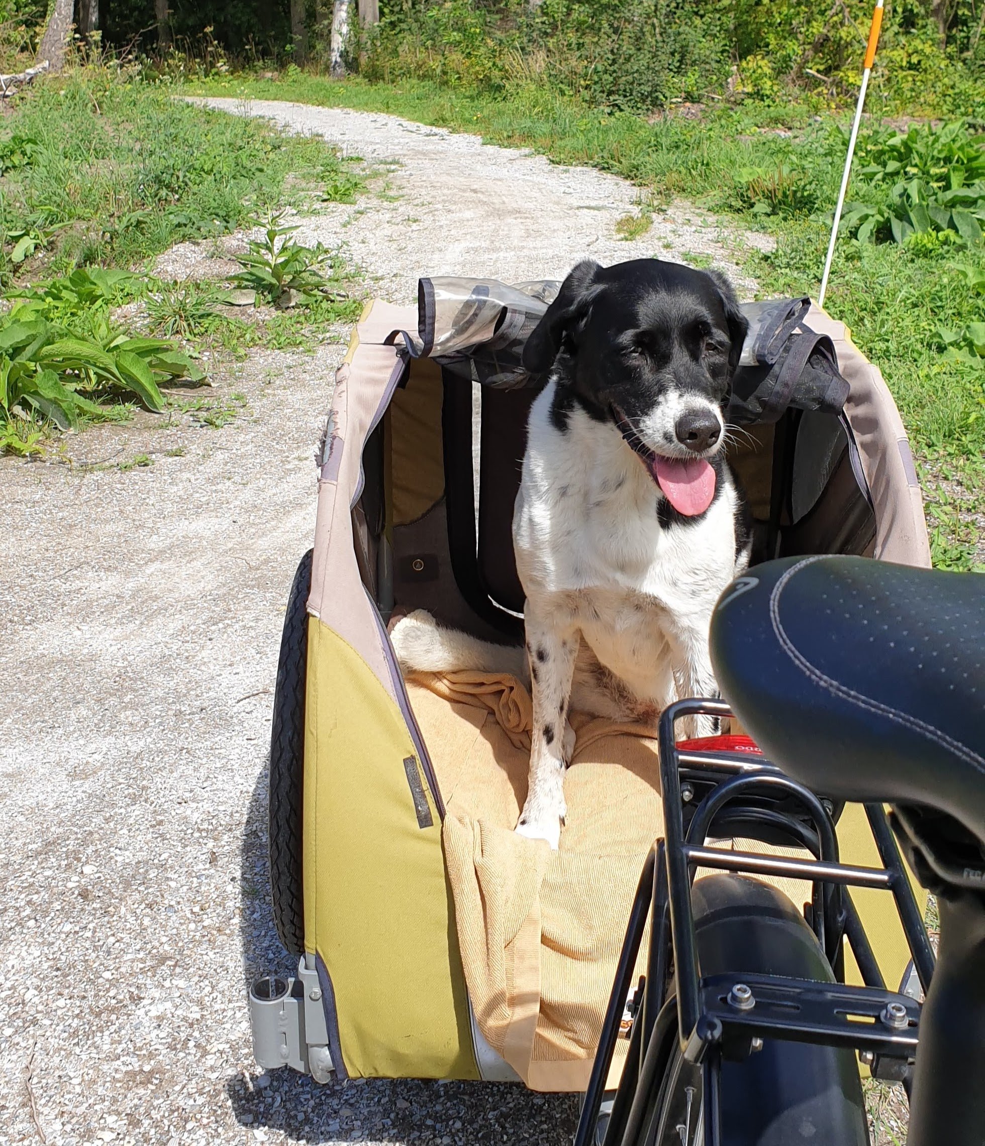 sinds kort heb ik een fietskar voor mijn hond en inmiddels vindt ze het leuk om op pad te gaan.