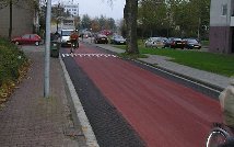 Overigens zijn de deskundigen van mening dat een breed fietspad van zwart asfalt meer veilihgheid biedt dan een smal fietspad van rood asfalt.