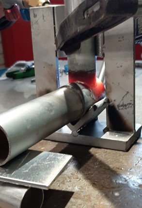 Hier bezig met de vlam aan de achterkant van het werkstuk met de stompe verbinding..