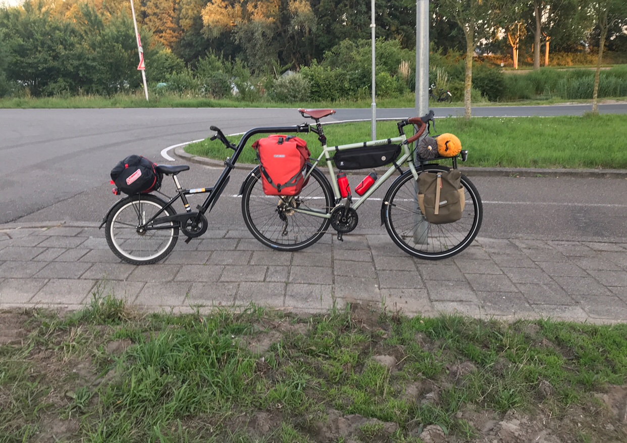Zoals de traditie het voorschrijft hebben ook wij veel te veel zooi mee genomen op onze eerst fietsvakantie. De fietskar heeft een maximaal laadvermogen van 45kg. Daarbij mag er maximaal 11kg op de dissel hangen. Ik denk dat we ergens rond de tussen de 35 en 40 kilo zaten van spullen in de fietskar.