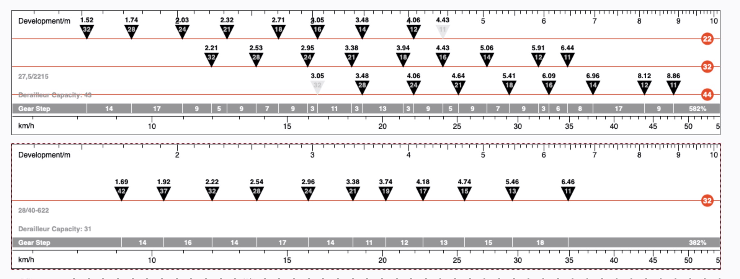 Zoals je ziet is de range iets kleiner aan de onderkant. Een 1x12 speed systeem zou beter zijn, maar dit wordt nog niet in de handel verkocht (tenzij je naar draadloos SRAM AXS gaat). Forumlid jwekeij heeft zijn fiets met SRAM-shifters omgebouwd naar een 1x12 door een paar onderdeeltjes in zijn shifter en derailleur te vervangen, hij kan daar misschien meer over vertellen.