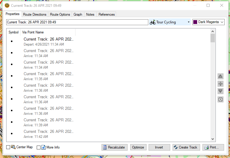 Het gekke is dat als ik op het apparaat een 'track' selecteer, dat er dan WEL een lijn getoond wordt. Maar ja, vooral tijdens het fietsen heb ik daar niks aan omdat ik dan niet gewaarschuwd word door de piep en steeds handmatig het scherm aan moet zetten/in de gaten houden