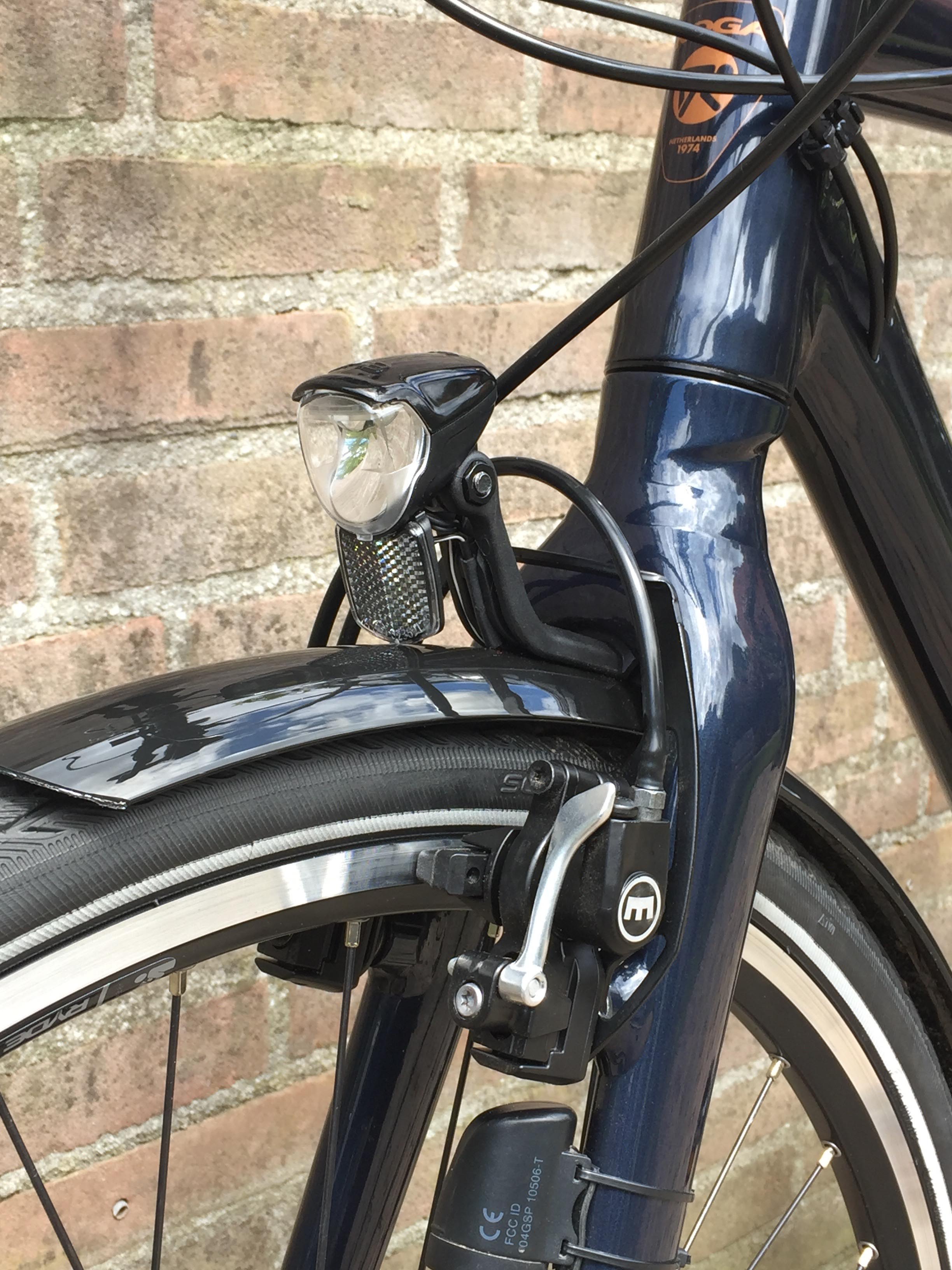 Magura HS-11 hydraulische velgremmen. Shimano naafdynamo met B&M 50 lux en Spanninga verlichting.