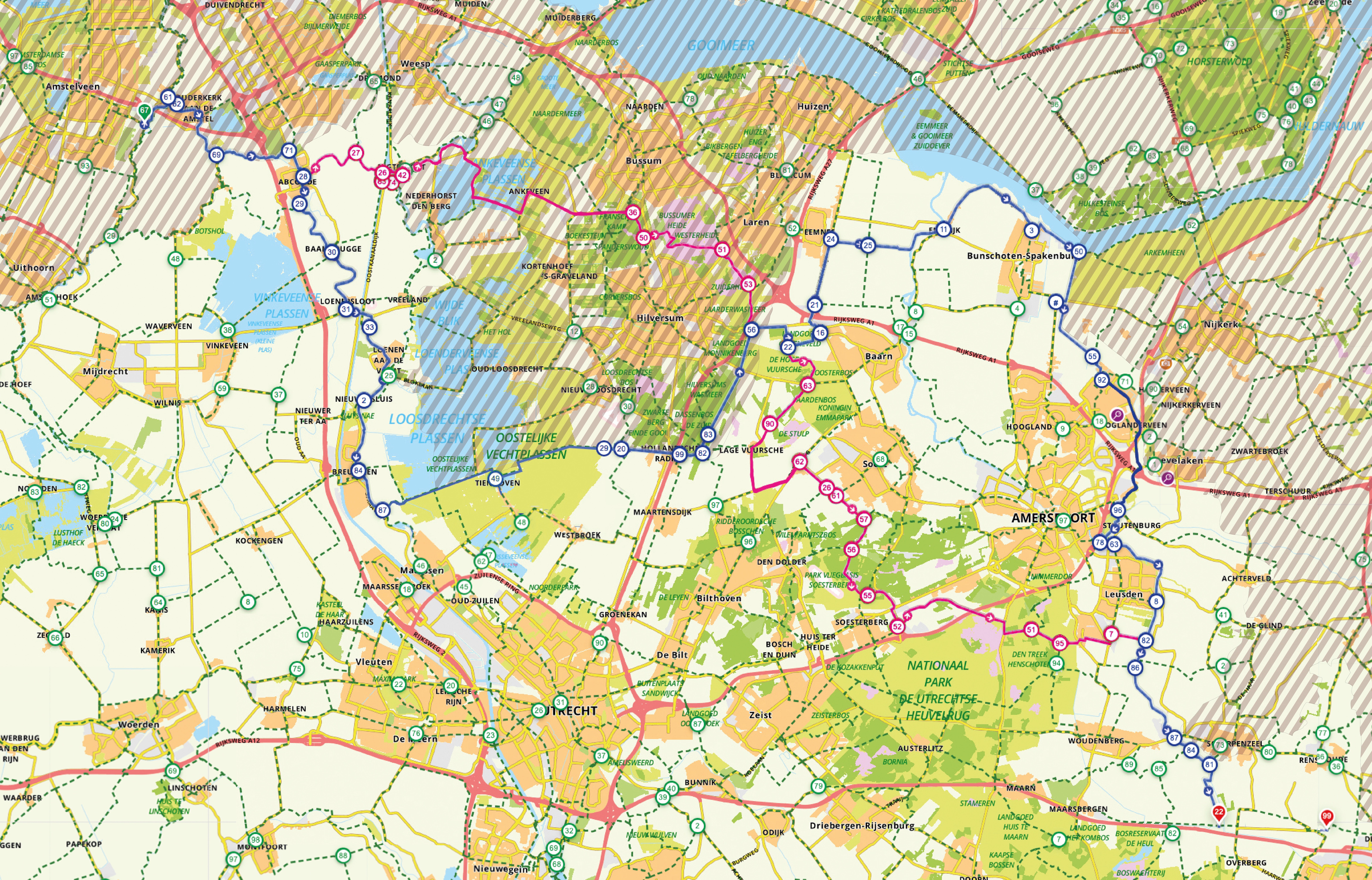 De routes kunnen tussen die van de gps of die van de knooppunten lichtelijk van elkaar afwijken. Kies in die gevallen altijd de recreatieve!