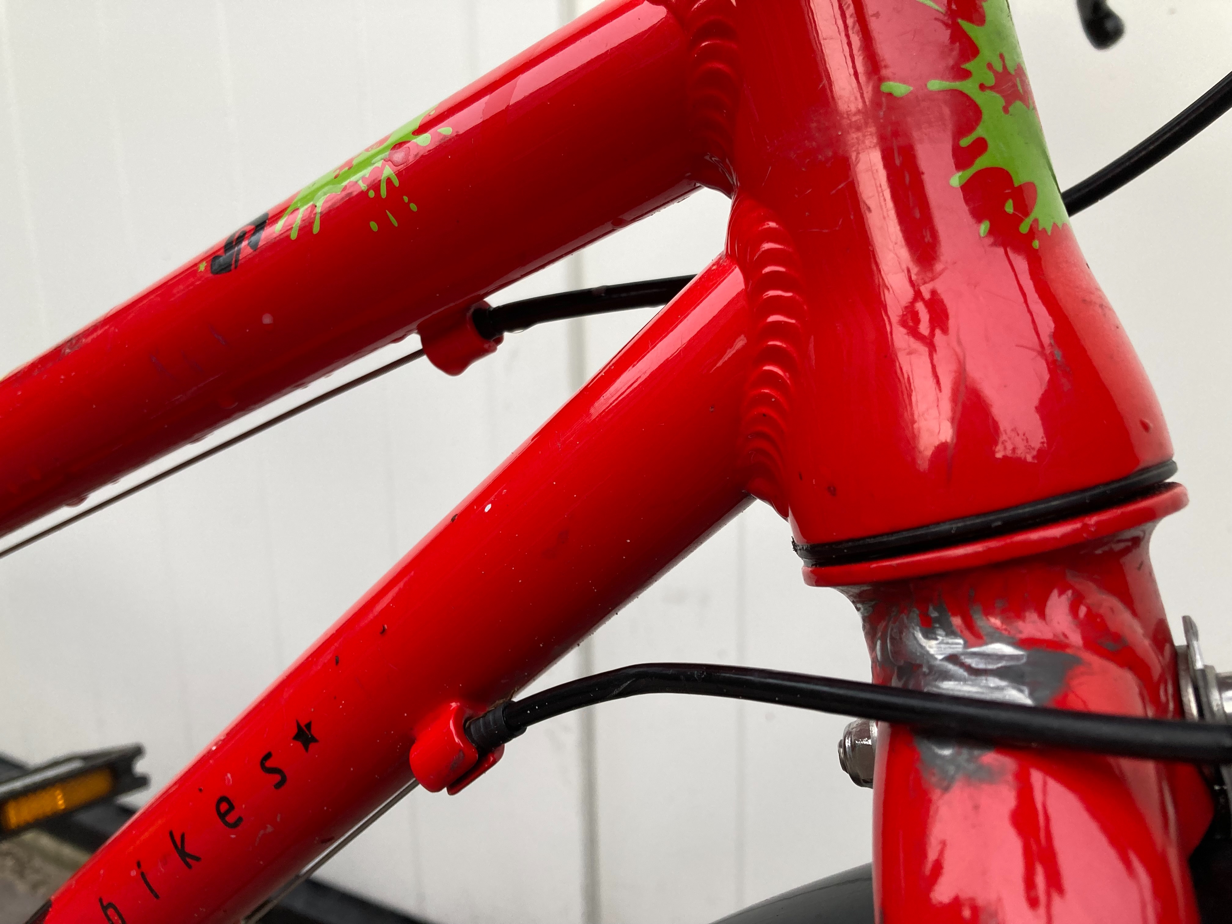 Pluspunten: geweldige fiets voor kinderen van 4 t/m 7 jaar. Kun je tenminste een beetje tempo en afstand mee maken. Aandrijving in orde, remmen in orde, wielen in orde, geometrie voor kleine mensjes. 9,6kg zoals op de foto. afgesteld op 1,25m zoals op de foto.
