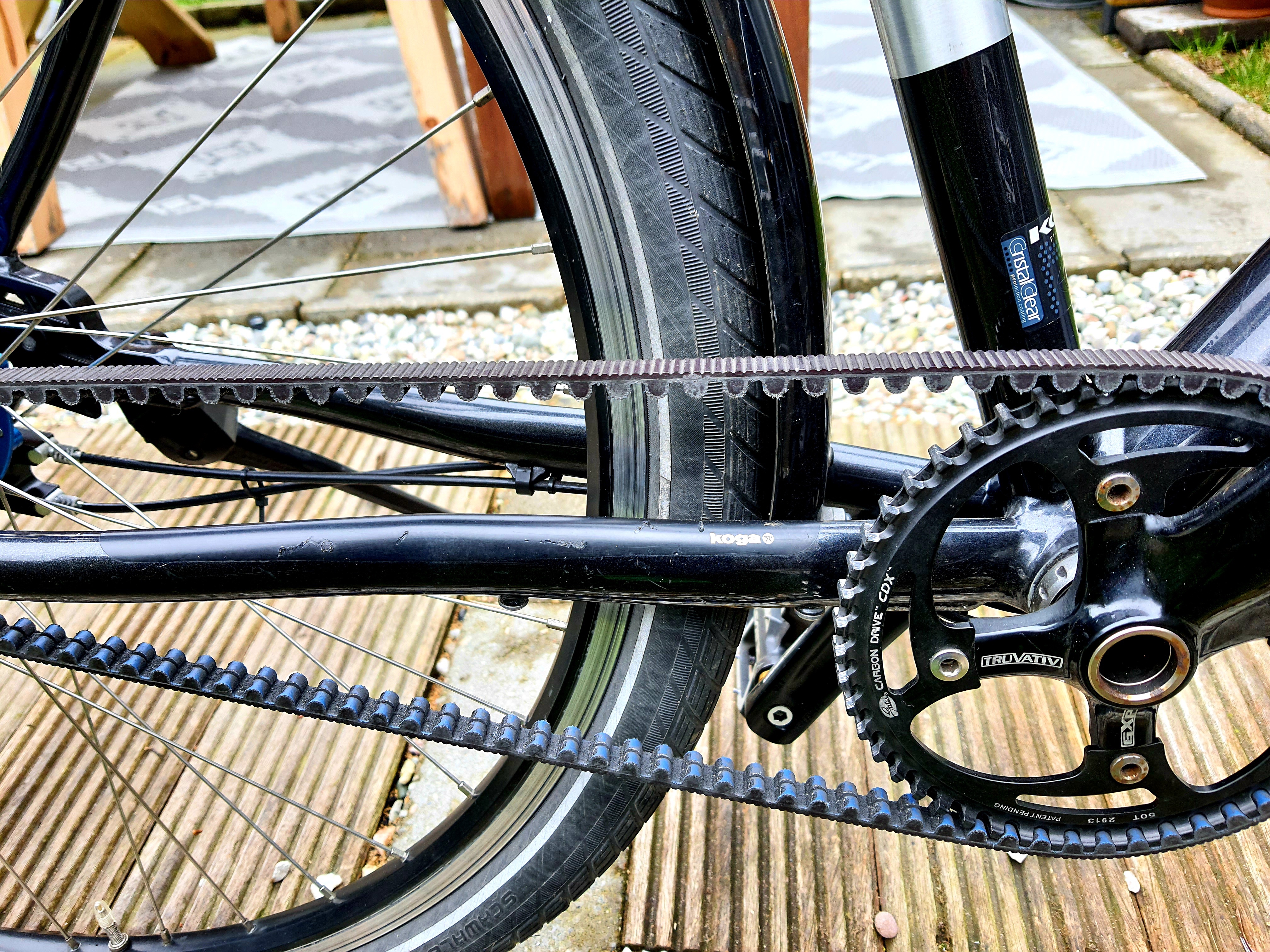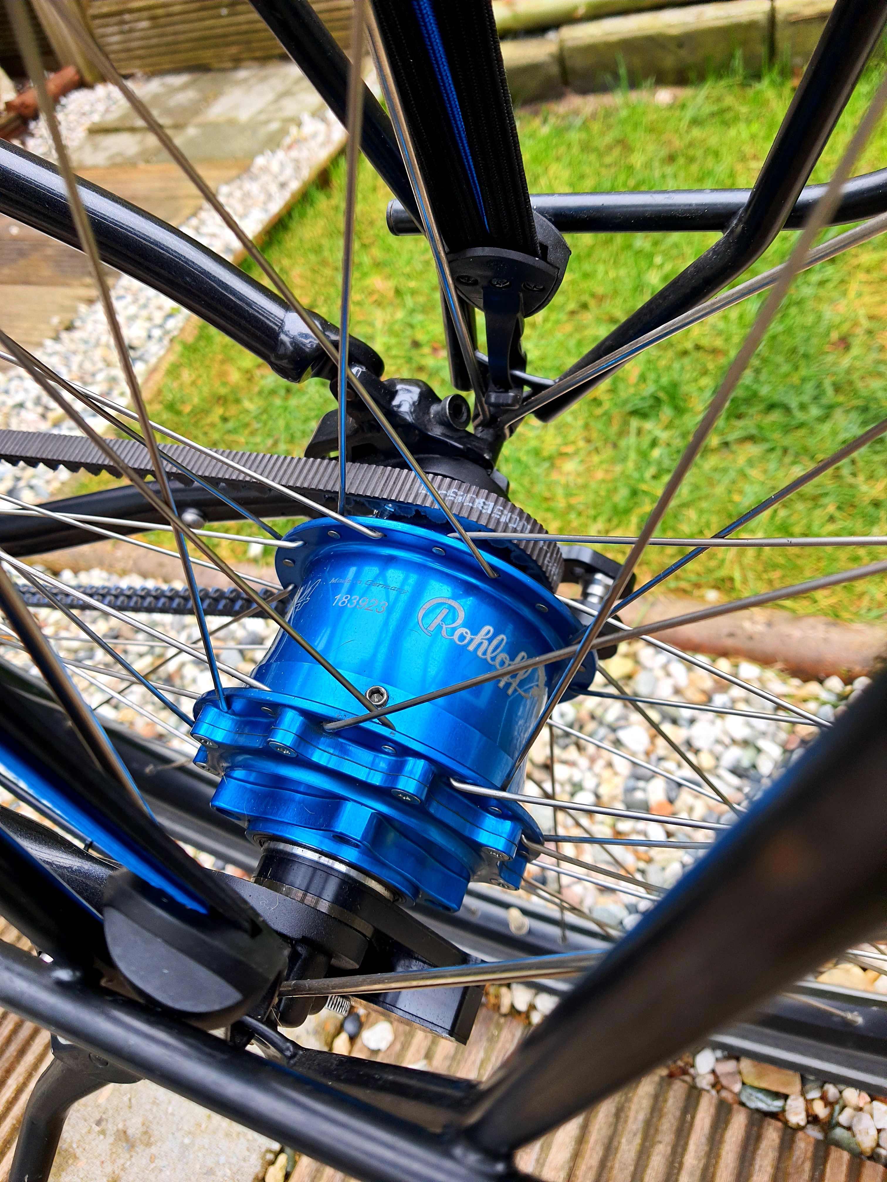 Rohloffnaaf: Rohloffnaaf Speedhub 500/14 met riemaandrijving: Gates carbon drive.