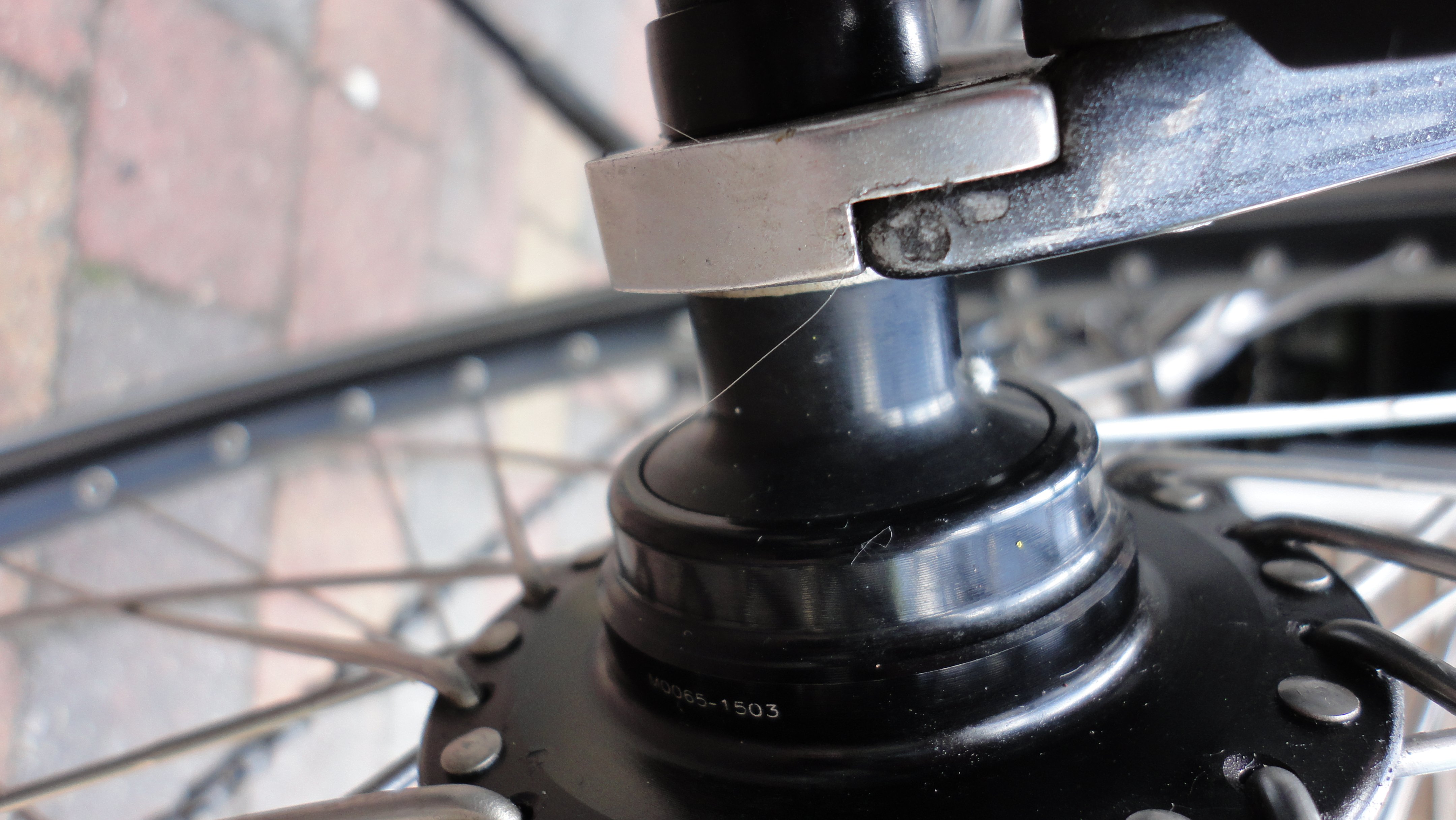 ik mis de afstandhouders / lagerbescherming tussen de naaf en de voorvork.