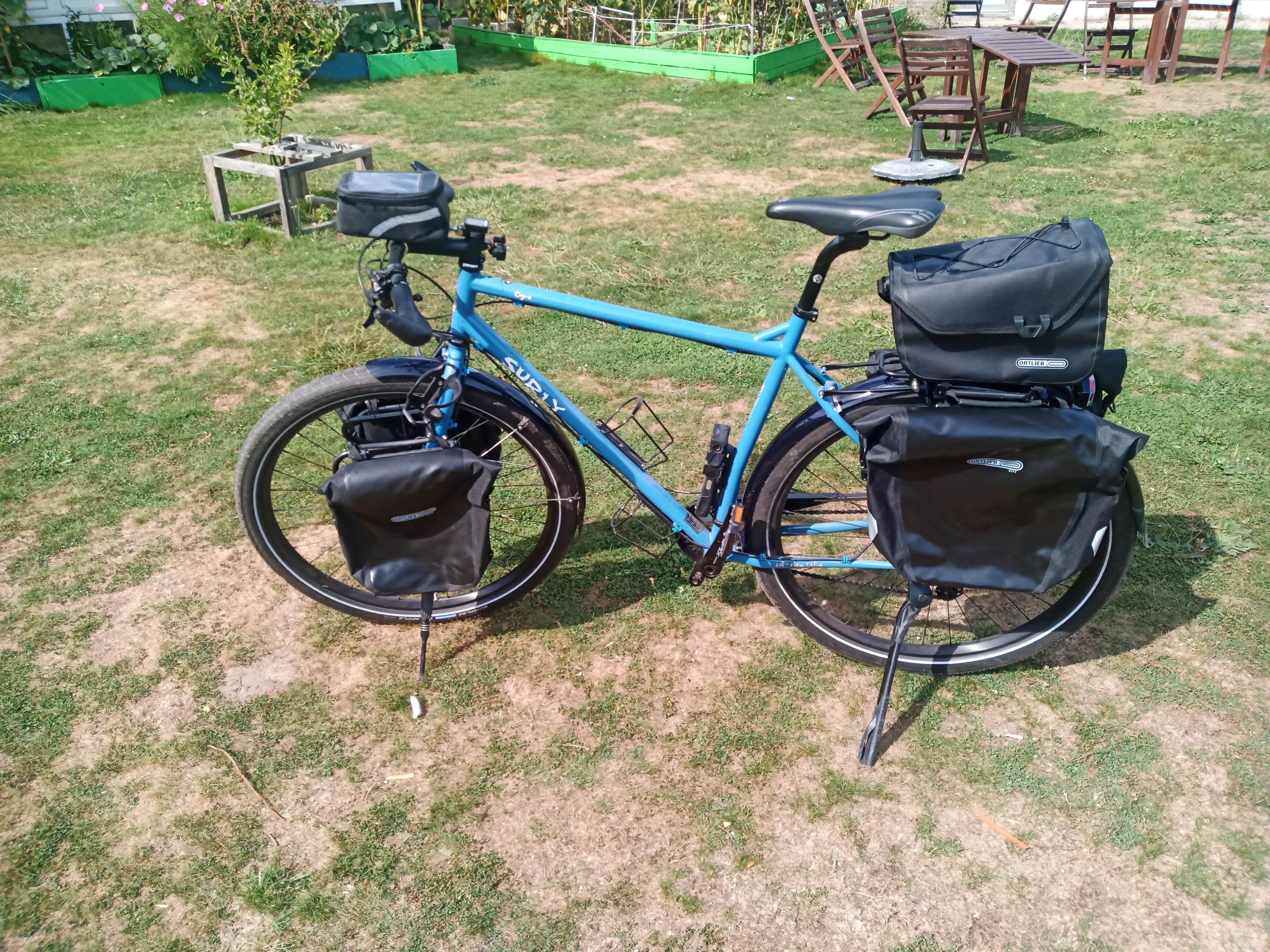 bagagedragers van tubus, zakken van orlieb. als je wil gaan reizen met de fiets en als je tussen 1.80M en 2M bent zou dit wel eens je droomfiets kunnen zijn, deze kwaliteit en details van de montage kan je voor zover ik weet niet in een winkel vinden....