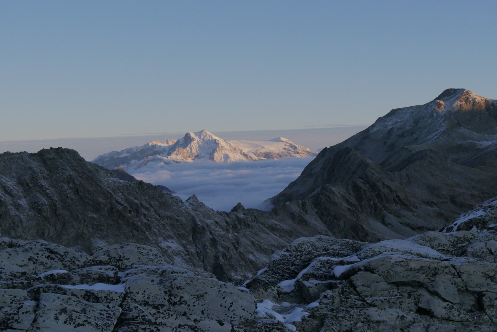 Halverwege de ochtend zit ik met een koffie en een appelgebak op het terras bovenop de Col d’Iseran, met 2.770 meter de hoogste verharde bergpas van Europa. Er is geen wolkje aan de lucht en de zon zorgt voor een behaaglijke warmte. Ik kijk uit over een adembenemend panorama van deels met sneeuw en ijs bedekte grijsgroene bergtoppen dat zich in alle windrichtingen uitstrekt. In alle vroegte ben ik uit Val d’Isere vertrokken om zeker te weten dat ik tijdens de klim geen last zou hebben van de motoren die het leven van een fietser aardig kunnen verzieken. Na twee weken fietsen door de Alpen ben ik topfit en zijn mijn benen van beton. Het kost me dan ook geen moeite om boven te komen. Door het nagenoeg ontbreken van ander verkeer is deze beklimming er één van puur plezier. Ik heb dus meer dan één reden om mezelf te trakteren op gebak. Daarom bestel ik nog maar een stuk.