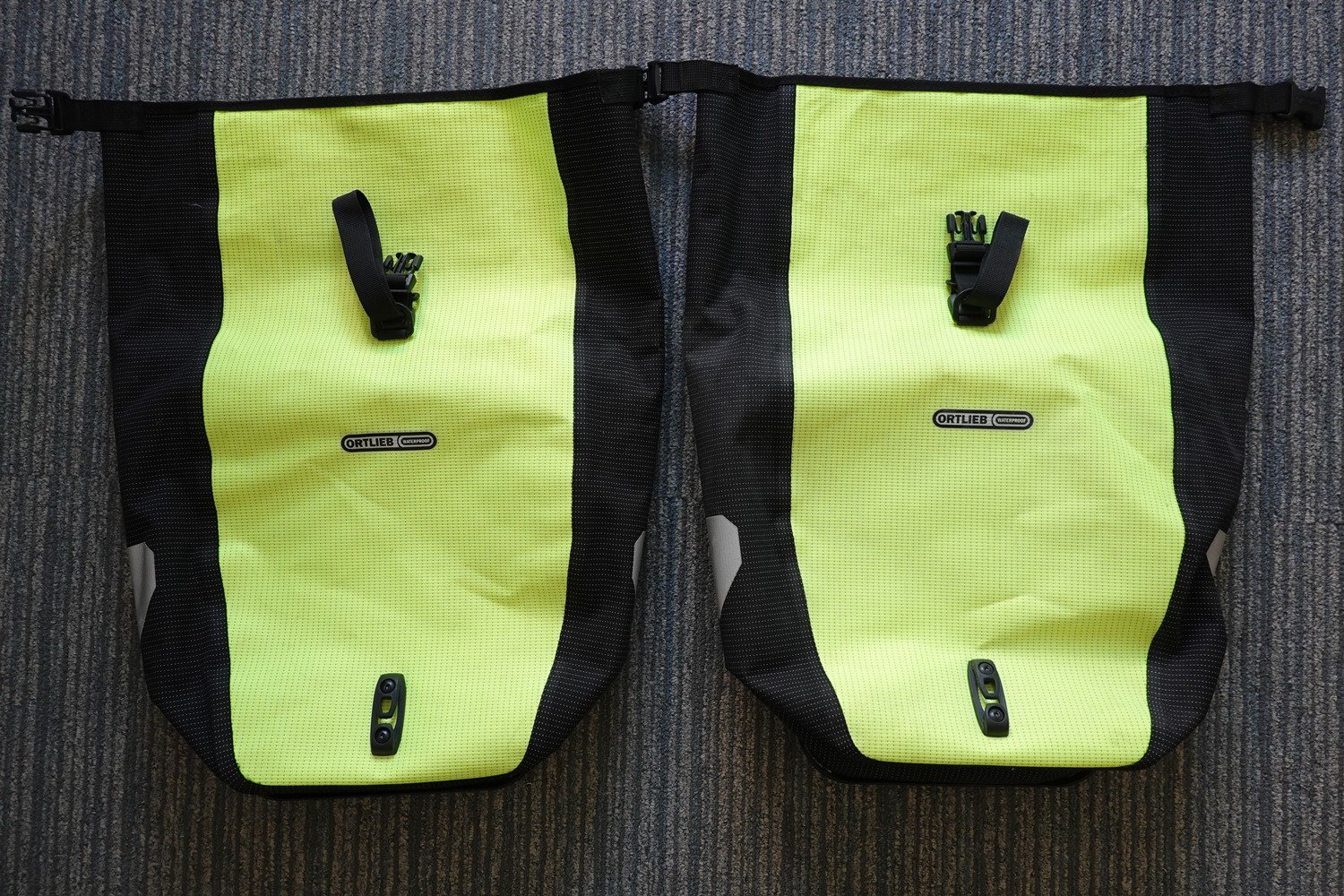 Twee fietstassen Ortlieb Back Roller High Visibility Geel.