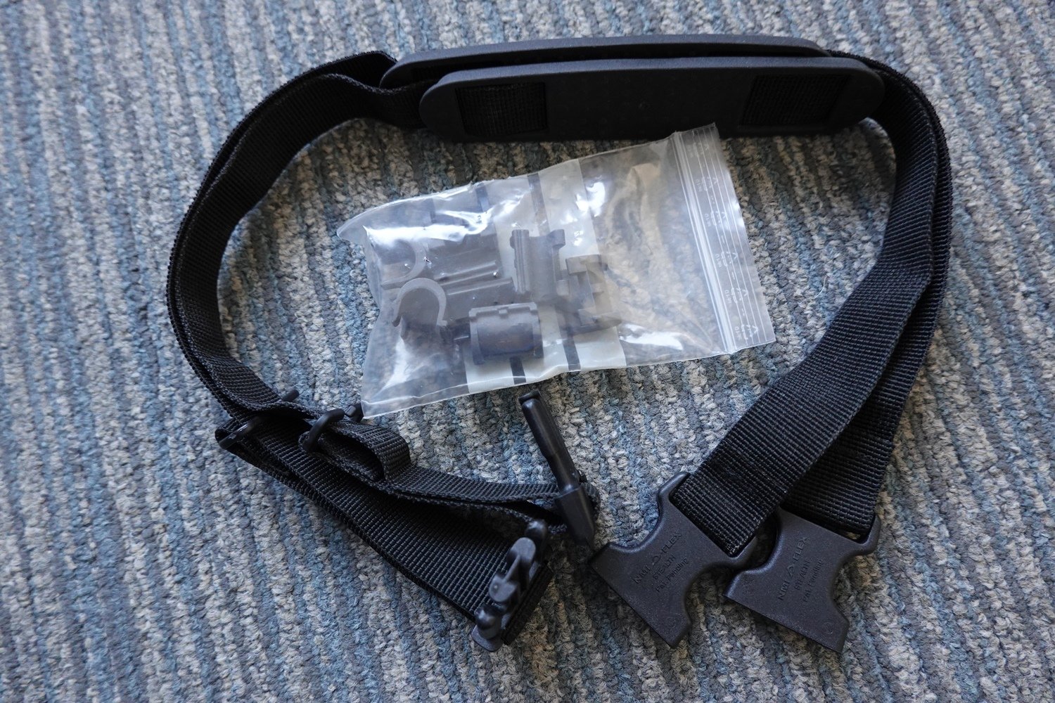 Inclusief alle vulstukjes en de schouderriemen.
