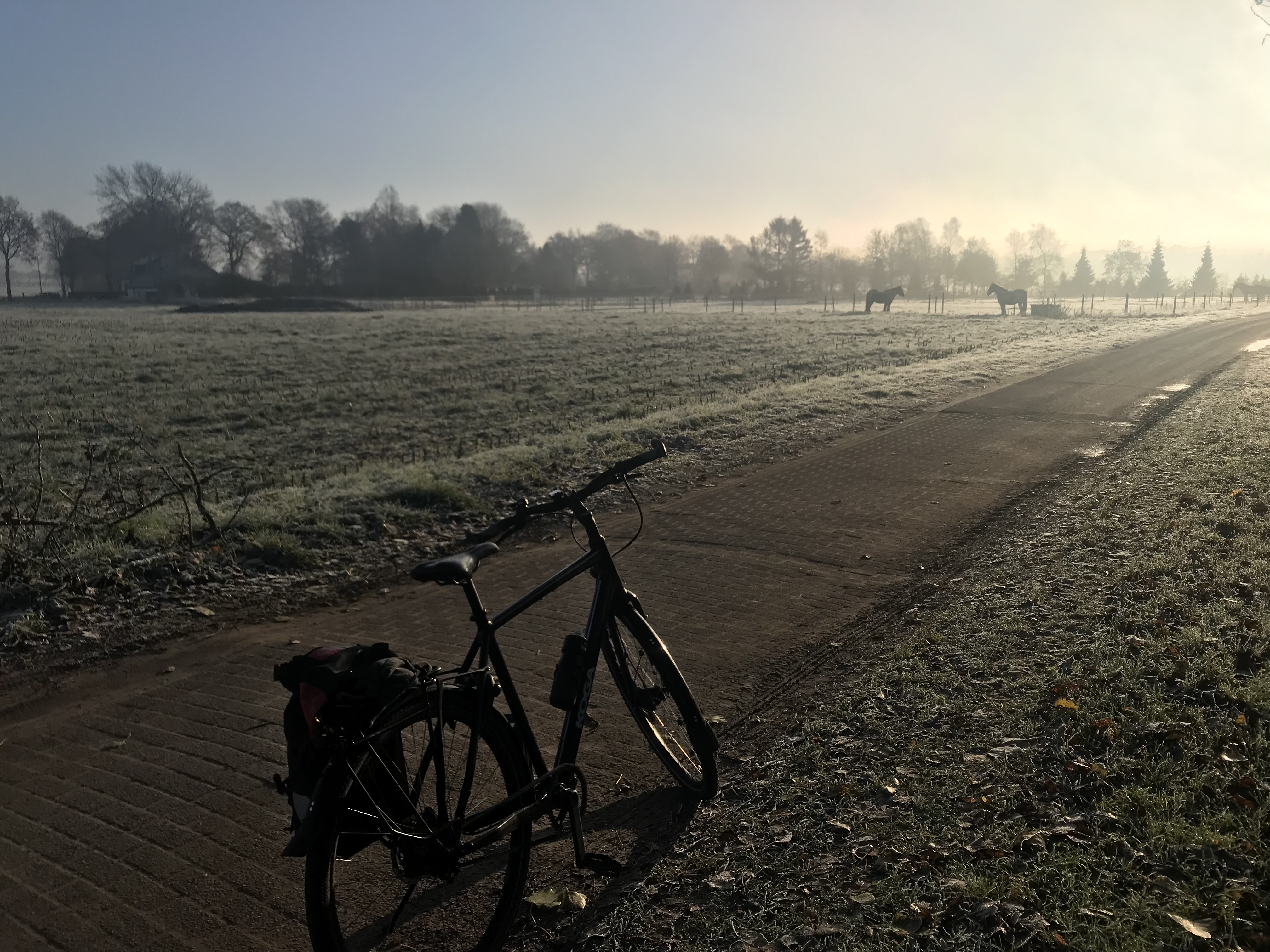 Niet vandaag, maar wel op 14 december, 13 jaar geleden bij min 6 graden fietsten we naar een paalkampeerplek van Hillegom naar Hazerswoude.