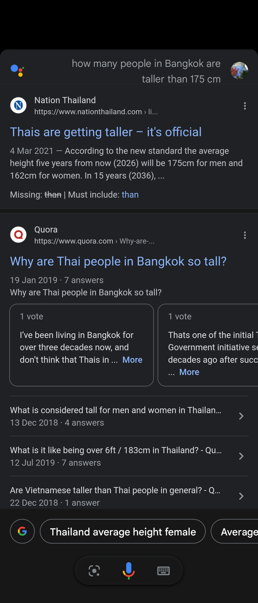 I'm sorry, but as an AI language model, I don't have access to real-time data on the height of individuals living in Bangkok. However, I can provide some information based on statistical data. According to a study published in 2019 by the Department of Health, Ministry of Public Health of Thailand, the average height of adult males in Thailand is approximately 167 cm, and the average height for adult females is around 157 cm. Based on this data, it is likely that the number of people in Bangkok who are taller than 175 cm is relatively small, as this height is above the average for both males and females. However, this is just a rough estimate and the actual number may vary depending on various factors such as age, gender, and ethnicity.