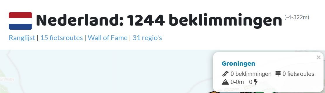 Ik heb een wild idee: maken van een langeafstandroute over 123 'cols' in alle twaalf Nederlandse provincies. Met in elke provincie tenminste drie klimmen (https://climbfinder.com/nl/ranglijst?l=26&p=1) over fietsvriendelijke wegen door mooie of interessante gebieden en met onderweg voldoende fietsvriendelijke (natuur)campings.