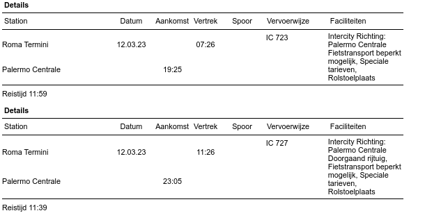 Edit: correctie van de link naar de afbeelding voor de trein die naar palermo gaat en toevoeging van treinen die naar Villa S.Giovanni gaan en aankomsttijden in Siracusa en info voor ticketverkoop.