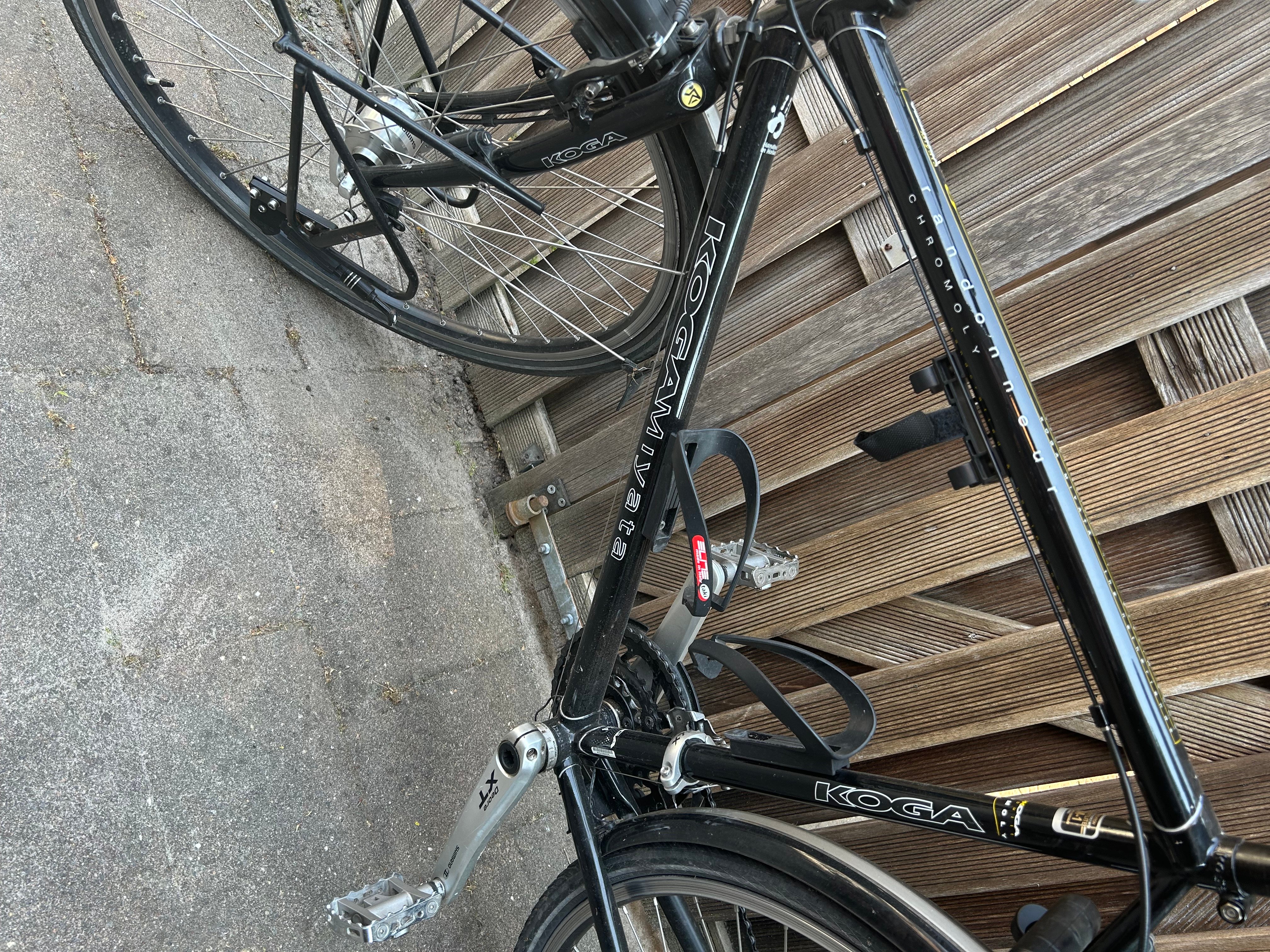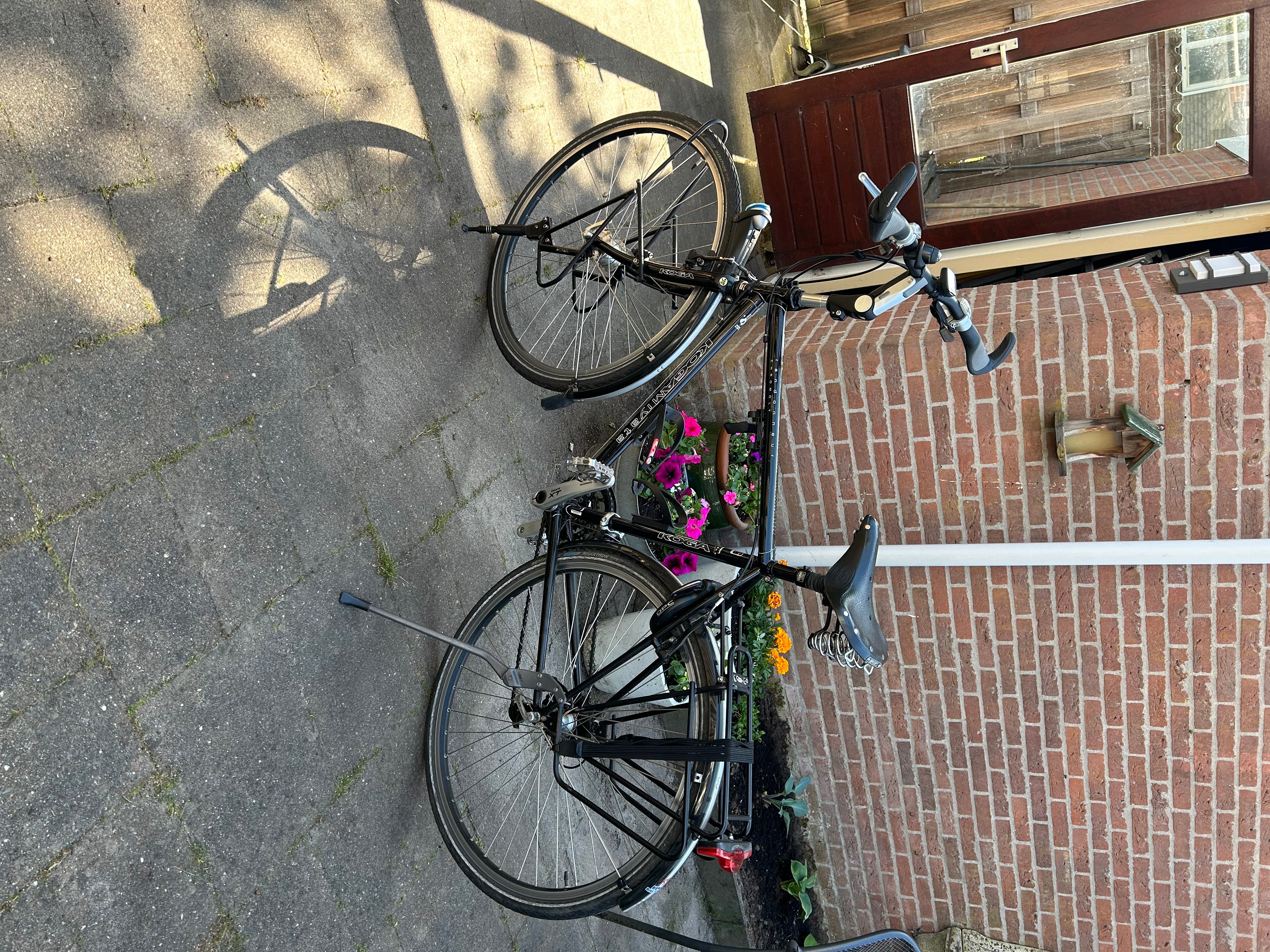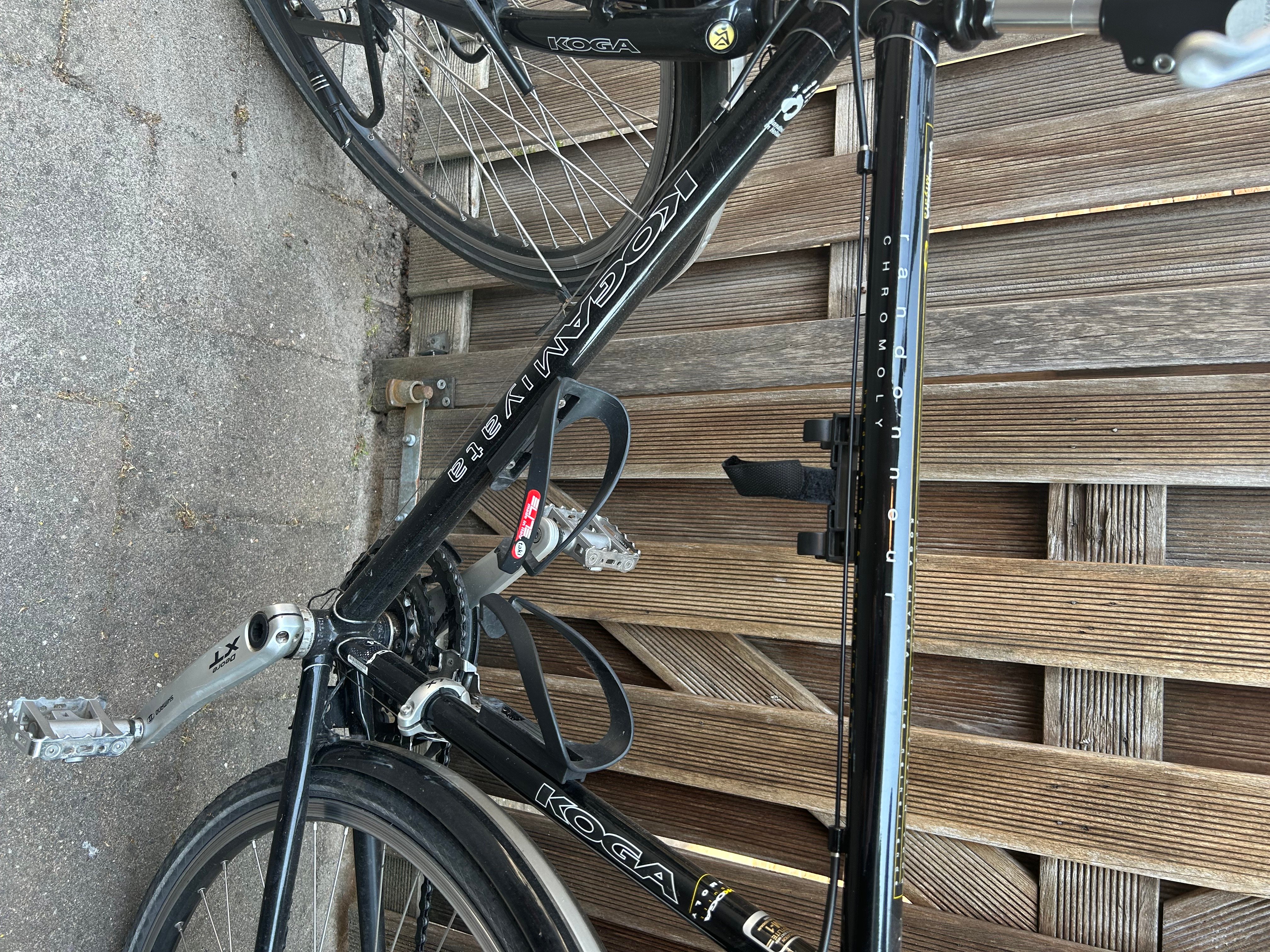 Mooie Koga Miyata Randonneur herenfiets van oktober 2010 met Framehoogte 54cm. Twee keer gebruikt voor een fietsvakantie (Engeland en Nederland). verder veel in de schuur gestaan. en af en toe gebruikt voor korte ritjes in de omgeving. Door ziekte eigenaar niet meer te gebruiken.Nog in zeer goede staat. Banden en remmen zijn nog goed. Er zit een Brooks zadel op en een ander stuur (zie foto's). 2 fietssleutels aanwezig. Je kunt de fiets zien en testen in Drunen. vraagprijs is