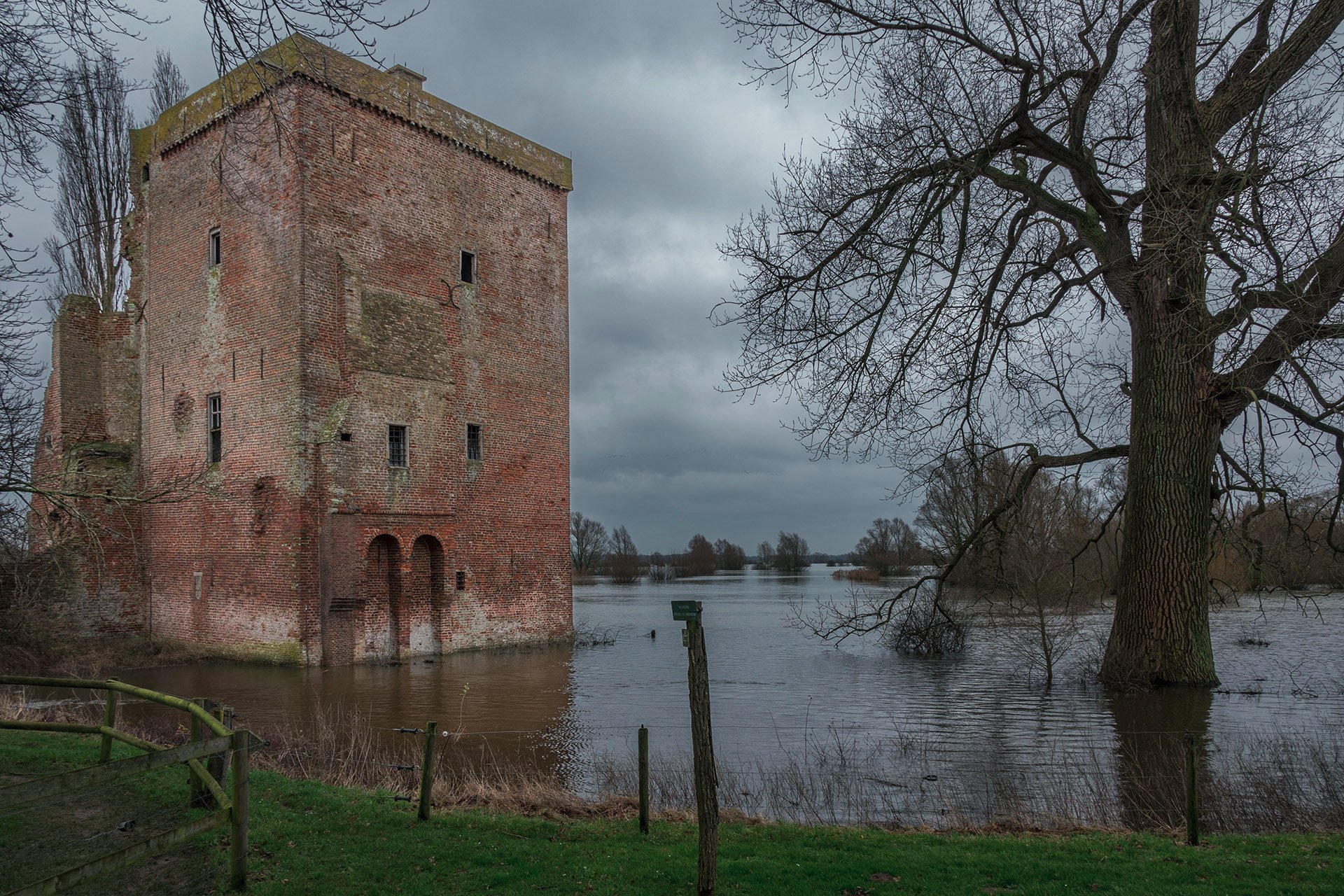 Eind december heb ik een dag langs de IJssel gefietst, ik was onder de indruk van het hoge water, zie kasteelruïne De Nijenbeek. Hier en daar stond de weg onder een dun laagje water en was fietsen mogelijk, ik hield droge schoenen.