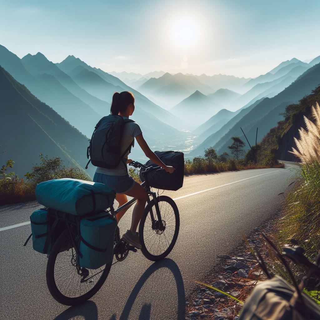 En ook het concept bikepacking of vakantiefietser vind ie lastig, Copilot tekent dan meestal een fietser met tassen én een zware rugzak.