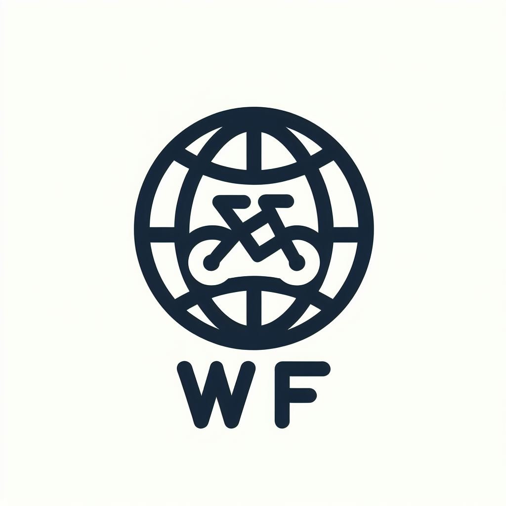 A simple minimalistic logo with the letters 'WF' for a community advocating travelling by bicycle all over the world