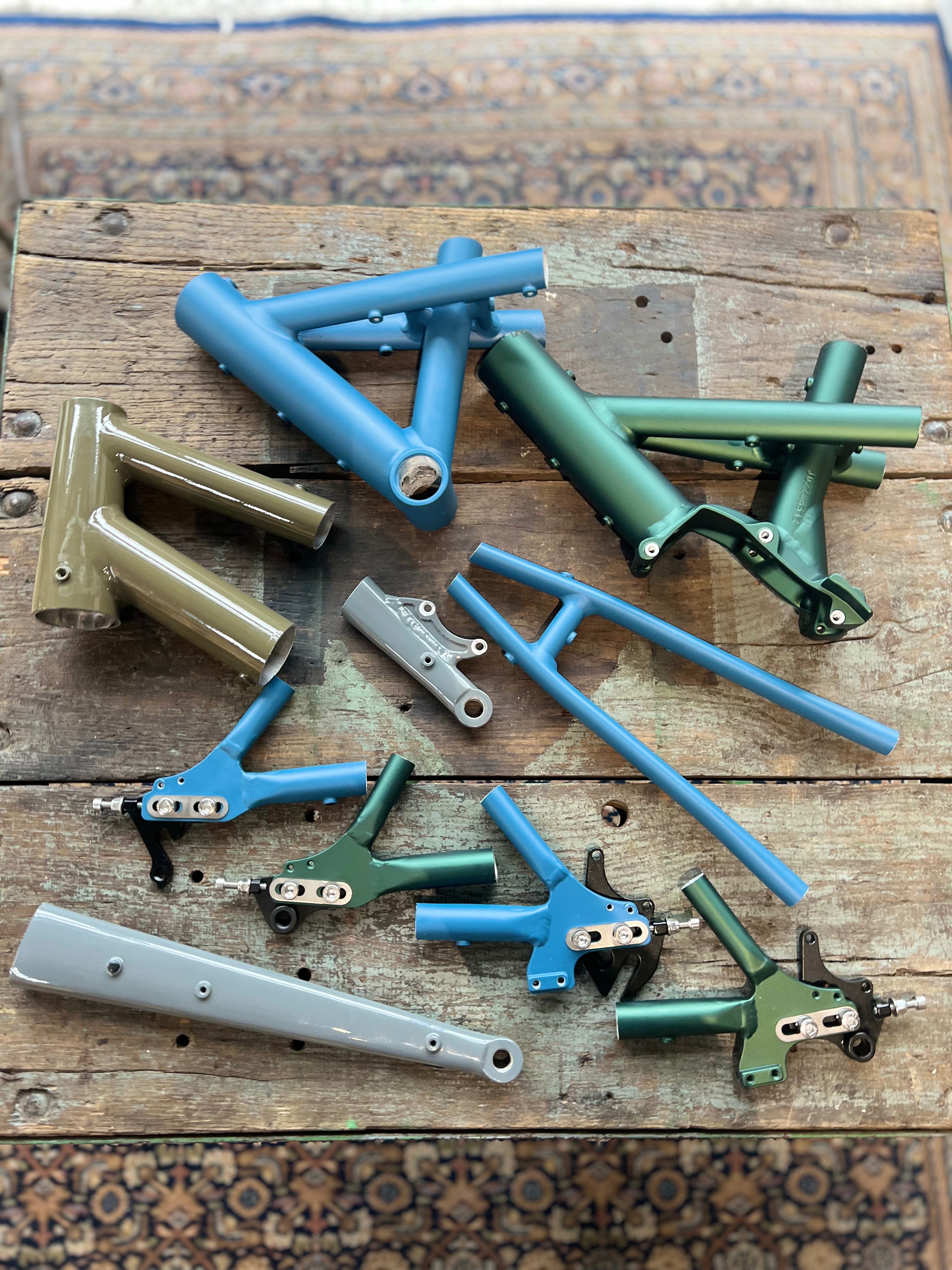 Ik heb om het wat duidelijker te maken hoe een standaard op de achtervork zit even wat frames in stukken gezaagd.