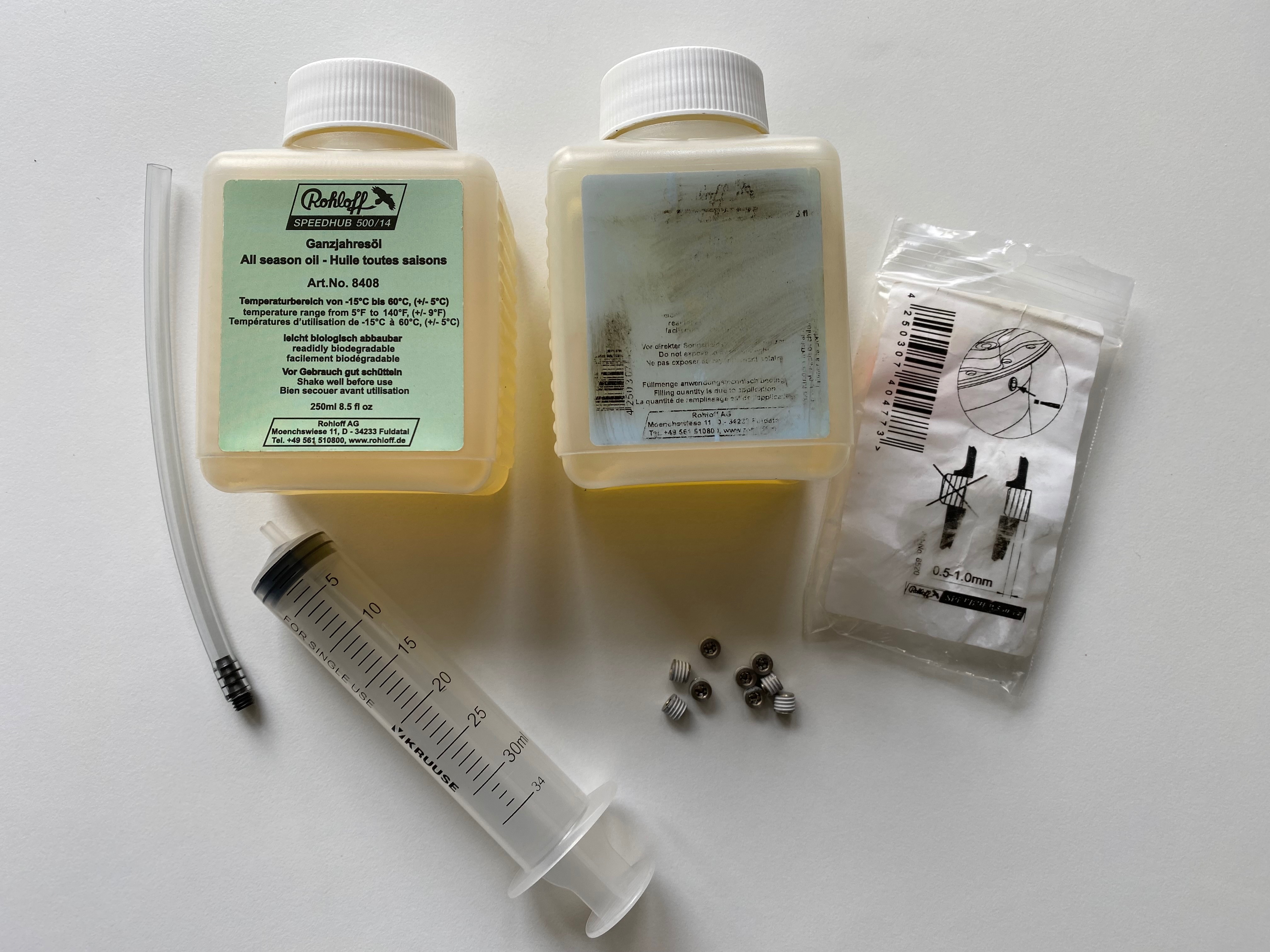 • Rohloff all season olie, bijna 250 ml. Hiermee kan je voorlopig vooruit!
