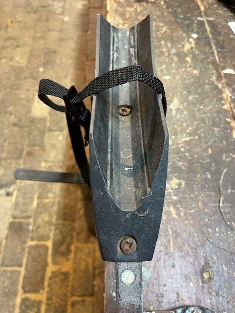 Ik gebruik voor zo'n toeoassing toch liever iets dat wel sterk is en blijft. Op de plek waar het leer geperforeerd is, is de sollbruchstelle, want daar is een stuk minder materiaal en zodra het riempje nat wordt blijft het daar het langste nat. Als je de fietsdrager na een natte autorit in je koude en vochtige schuurtje opbergt droogt het daar juist het slechtste.