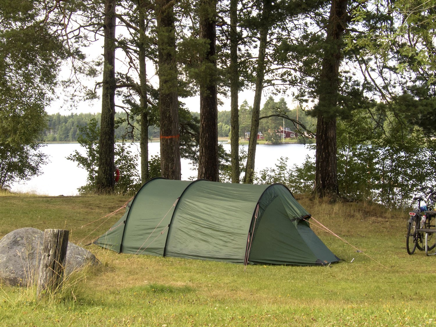 Bij het opruimen van de zolder kwam ik onze oude Hilleberg Stalon GT tegen. Voor ons de ideale fietstent.Tijd om er afscheid van te nemen. Ook al is de tent op leeftijd en vertoont deze wat gebreken, toch kun je er nog veel plezier aan beleven denk ik. Het grootste probleem is het doorslaan van het grondzeil van de binnentent. Omdat we vaak in een vochtig klimaat kamperen (Schotland, Scandinavië) was dat voor ons een reden om een andere tent te kopen. Maar in drogere omstandigheden of met een extra onderzeil moet dat geen probleem zijn. Ook zitten er wat gaatjes in de binnentent en een klein gaatje in de buitentent. De tent weegt ongeveer 4 kilo en het is een dwarsslaper. Het is een GT model dus is er een extra ruime leefruimte. Daar hebben we een bijna nieuw grondzeil voor.