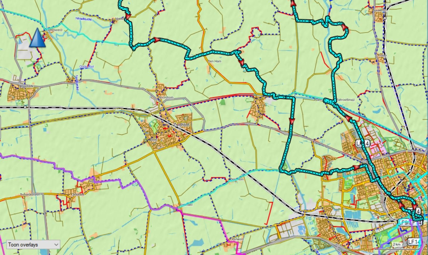 En de route: 74 km, waarvan 1,7 op het pontje.