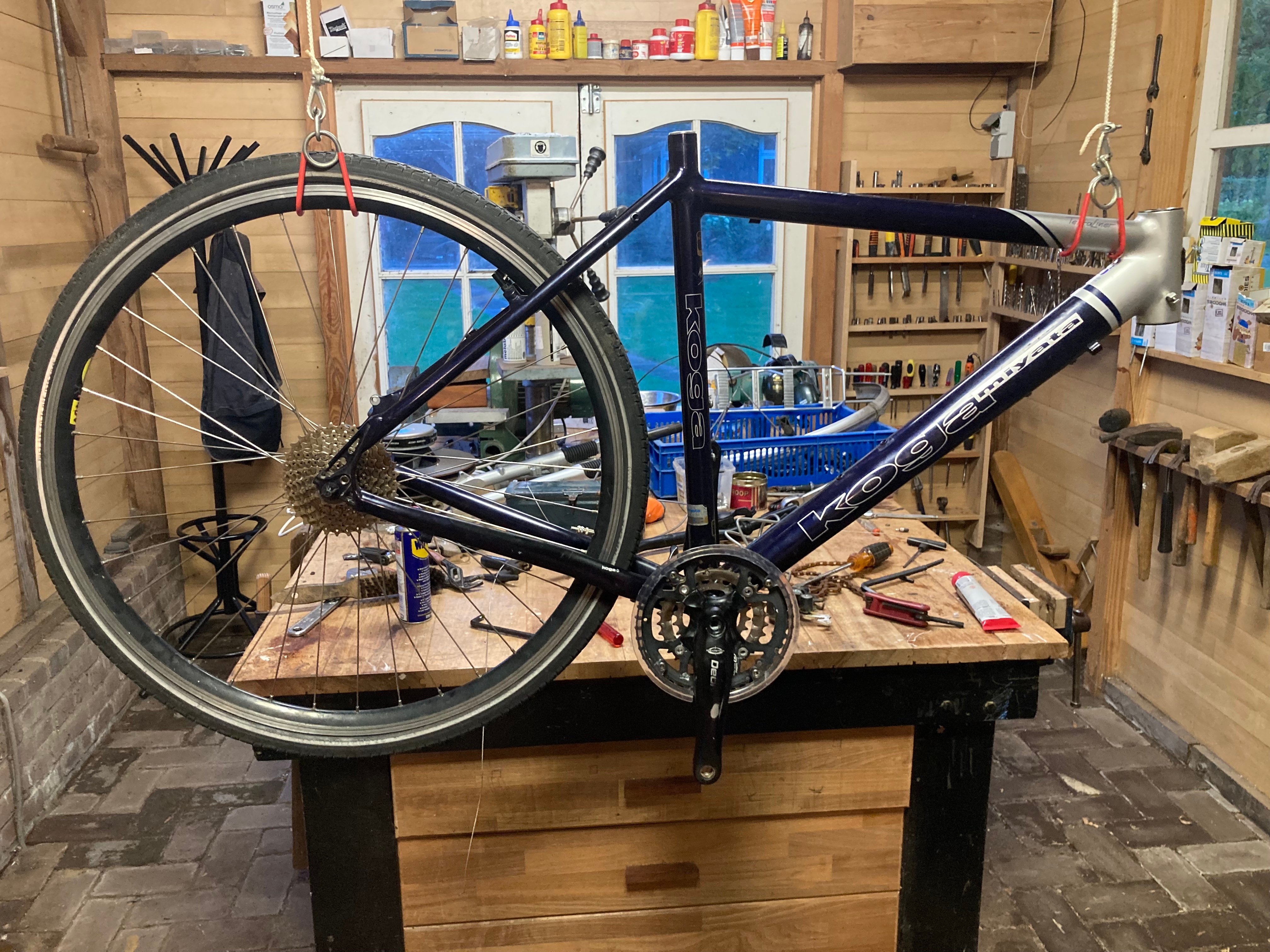 Nu verder met zadel en versnelling/remmen (heb nieuwe setjes bij Decathlon gekocht)...ben benieuwd of ik dat allemaal goed aan de praat krijg. Gelukkig heb ik een soortgelijke Koga uit 2008 er naast staan om te kijken hoe het moet. En natuurlijk dit forum! :D