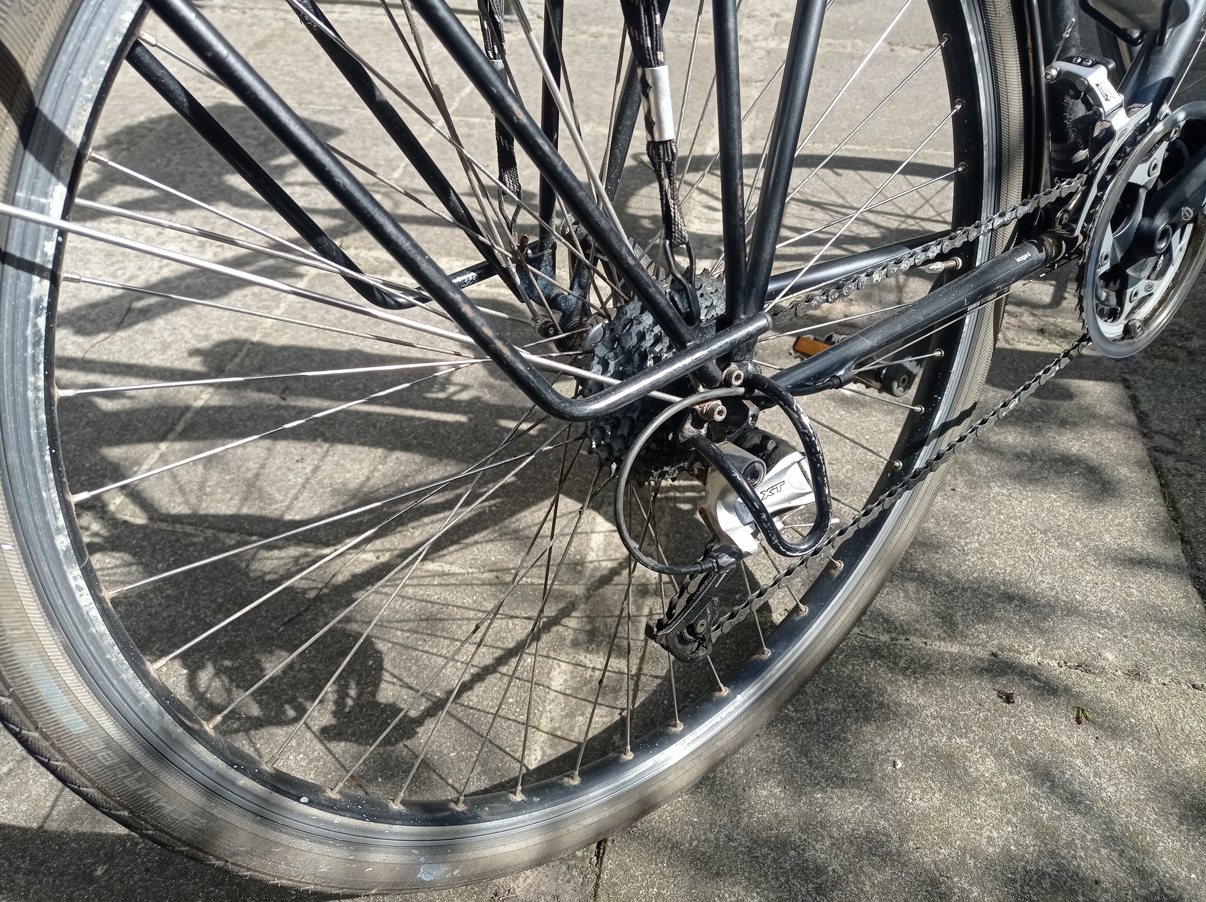 Het betreft een klassieker dus geen e-bike, geen Rohloff naaf, geen riem. Wel is de fiets Shimano Deore XT afgemonteerd met o.a. derailleur (3x9);