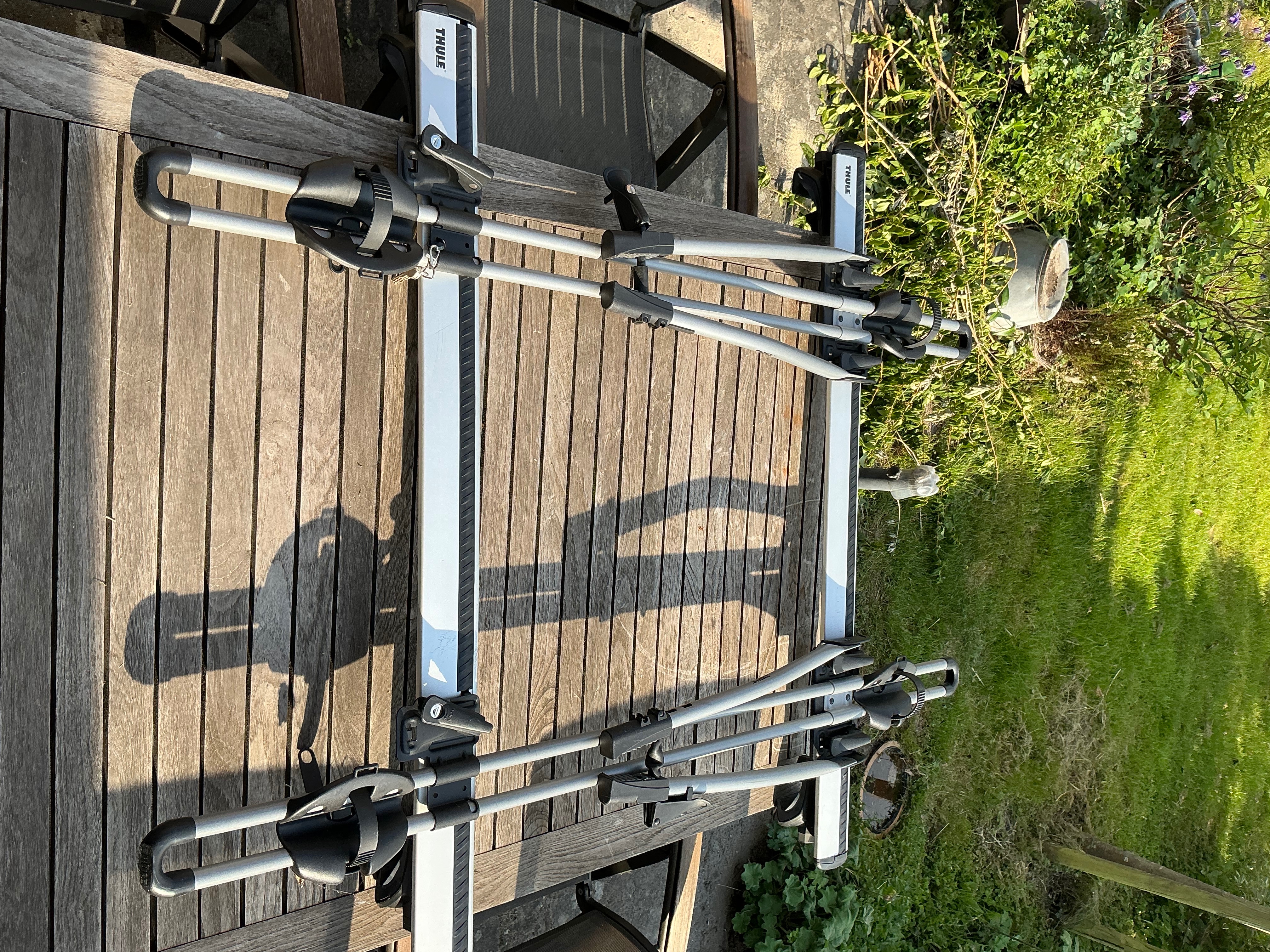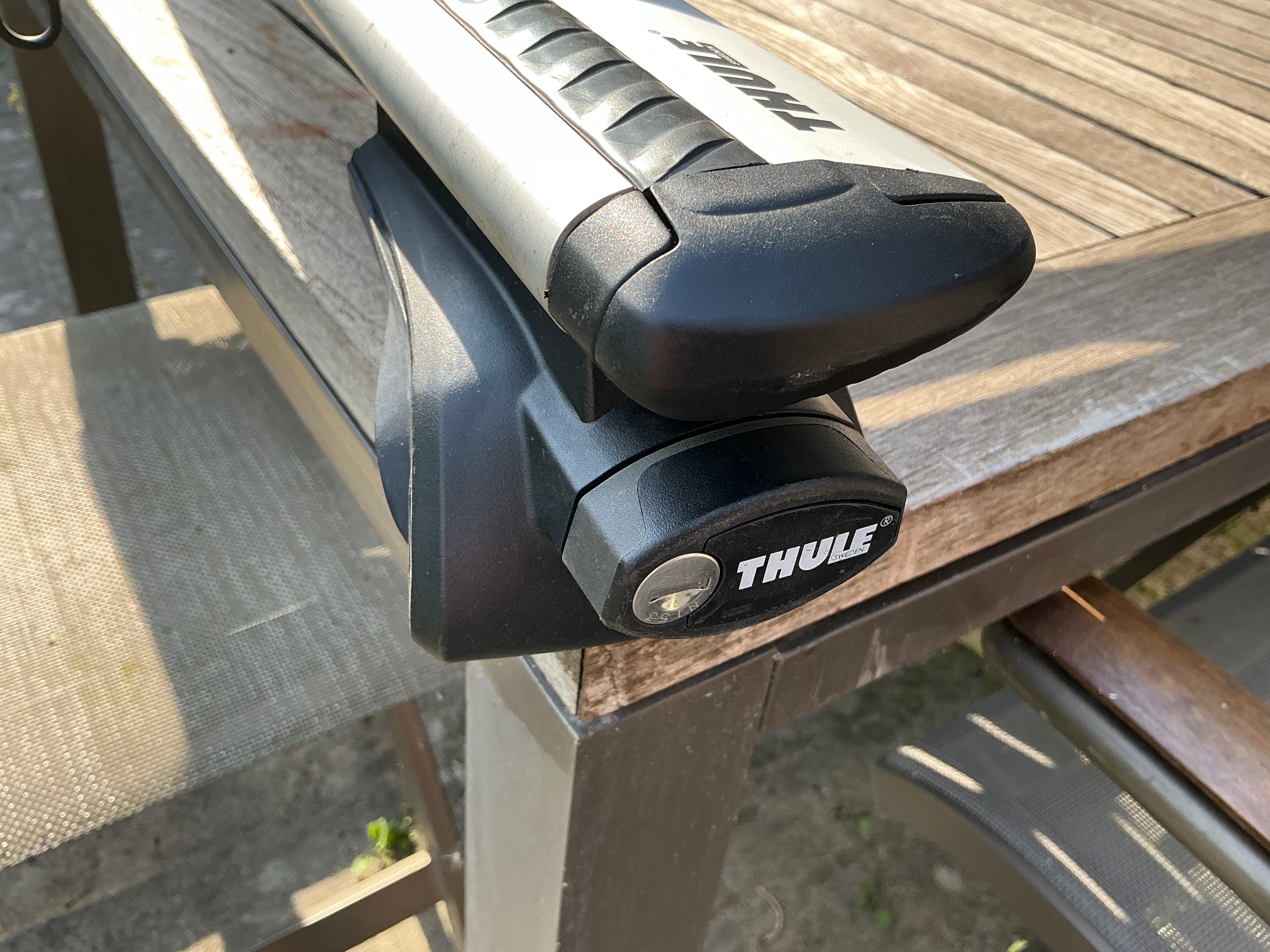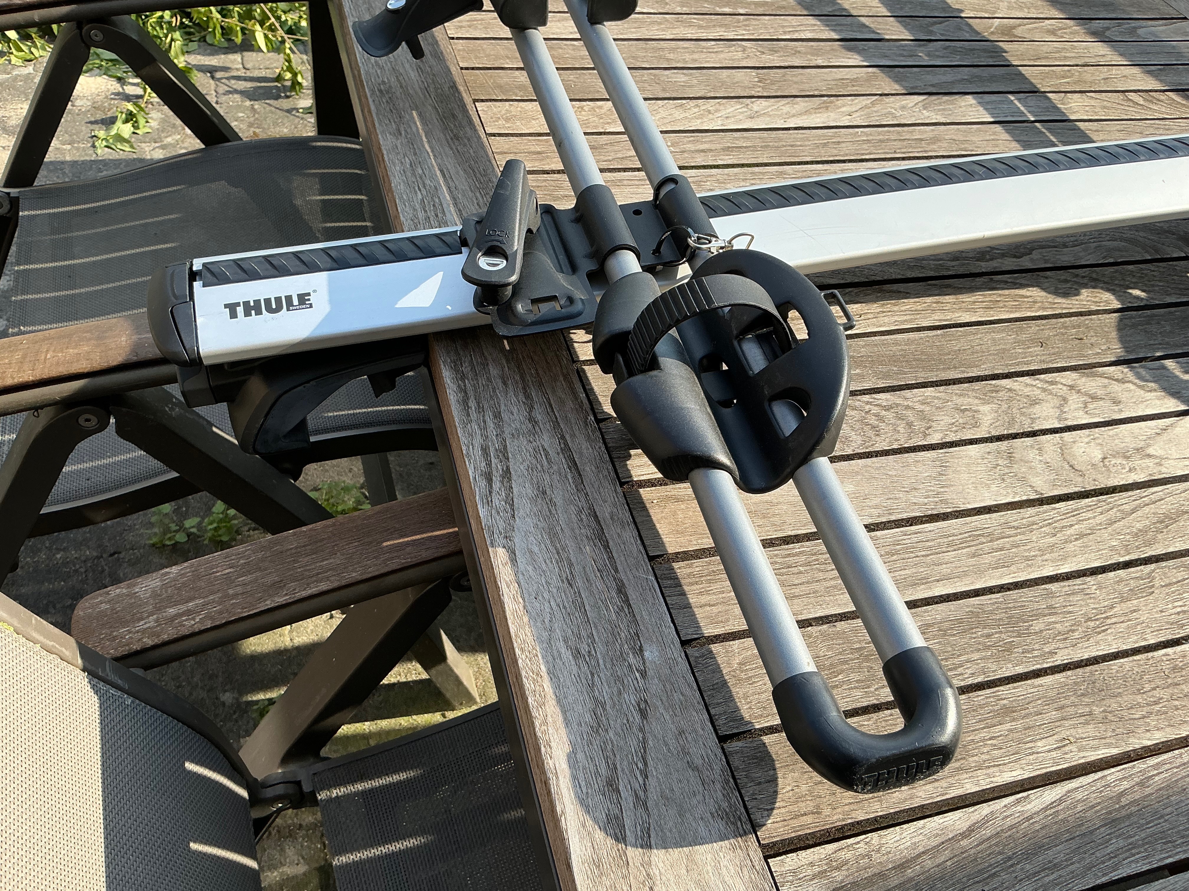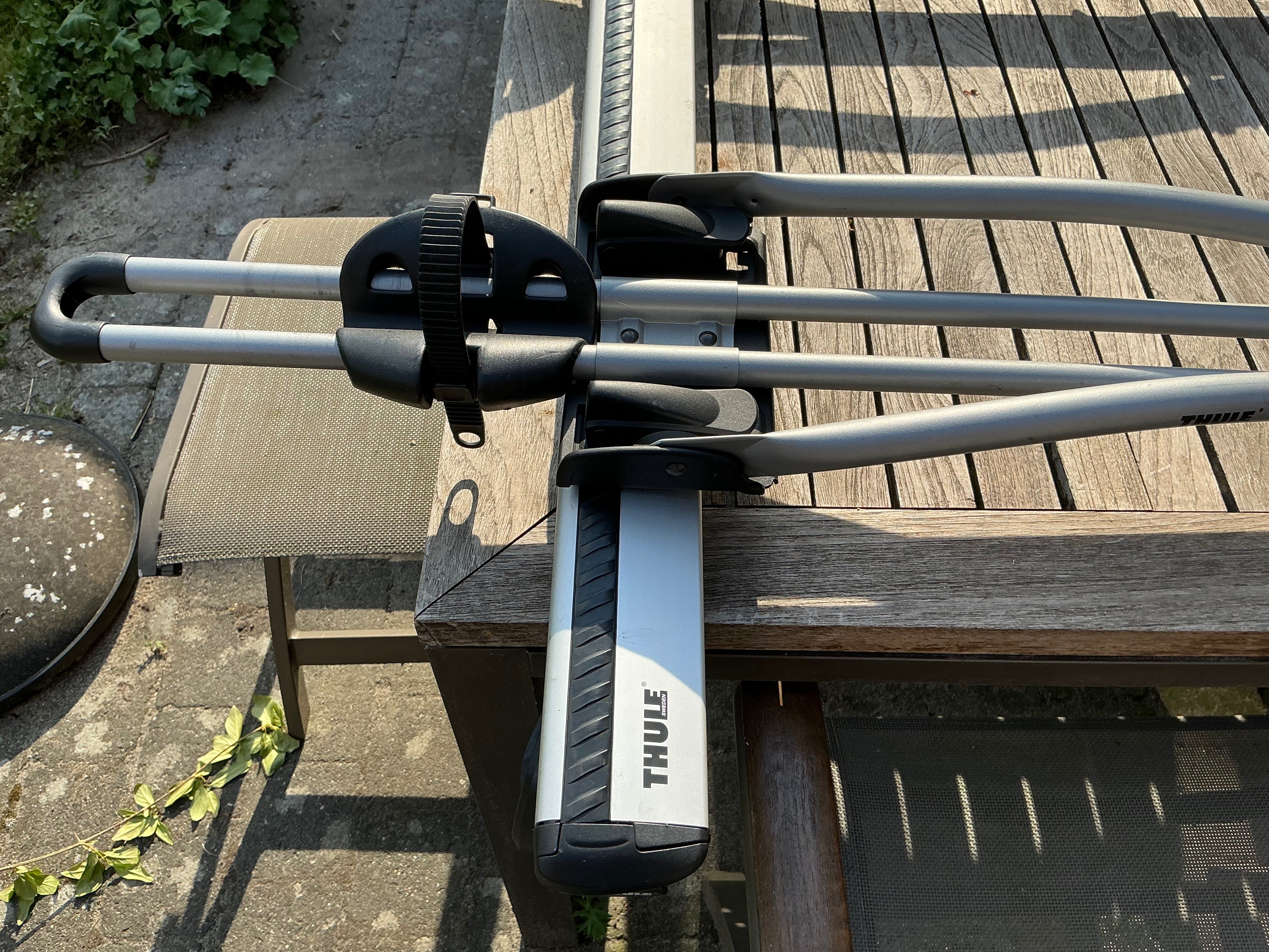 Te koop Thule dakdragers universeel voor open rail en 2 Thule fietsendragers.