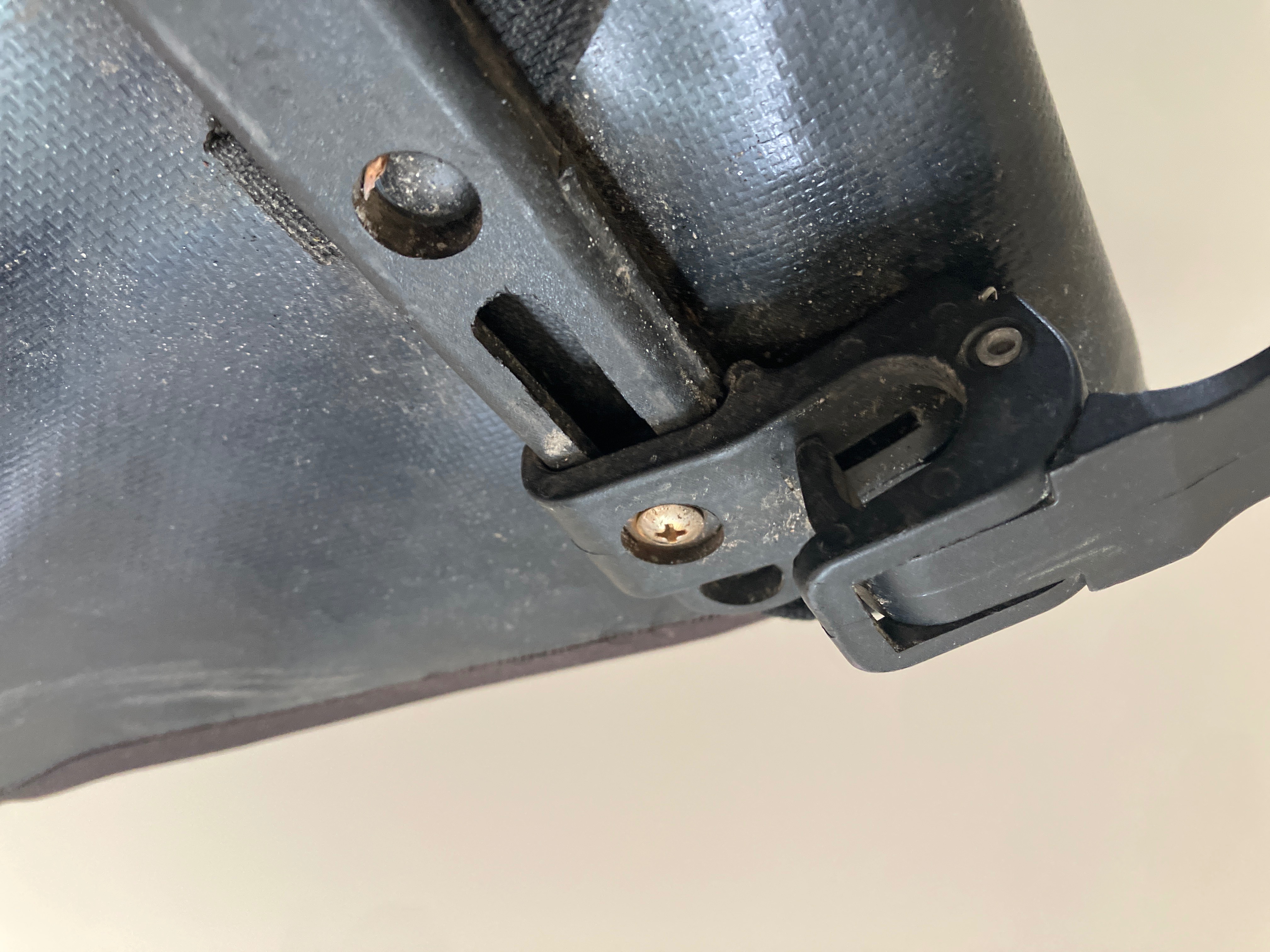 Ik heb een oud model fietstas met rol sluiting van de biltema (een soort Zweedse gamma) Nu is bij een tas 1 ophang haak gedeeltelijk doormidden. Heeft iemand een idee of de ophang haken misschien te vervangen zijn met een ander merk wat in Nederland te verkrijgen is? Want verder zijn de tassen nog goed. Als bijlage foto van het systeem (deze is nog heel)
