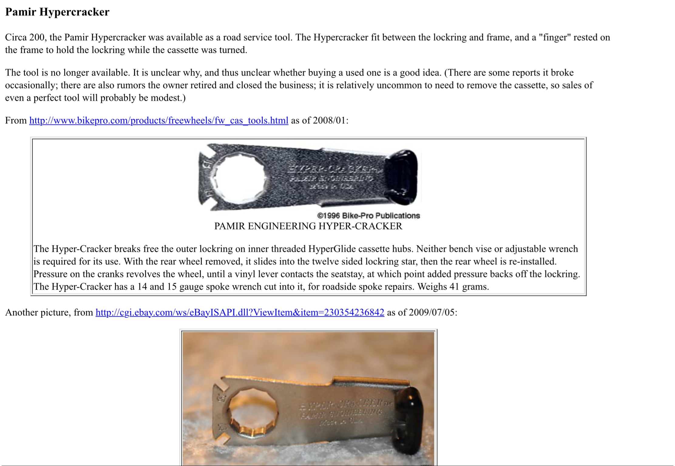 Toevallig kwam ik een door M-gineering ontwikkelde NBT (next best thing) tegen, dat is een soort ring met vertanding die in de vertanding van de sluitring van de cassette past met een uitsteeksel dat en in de sleuf van de achterpad past en waarmee de cassette gedemonteerd kan worden.