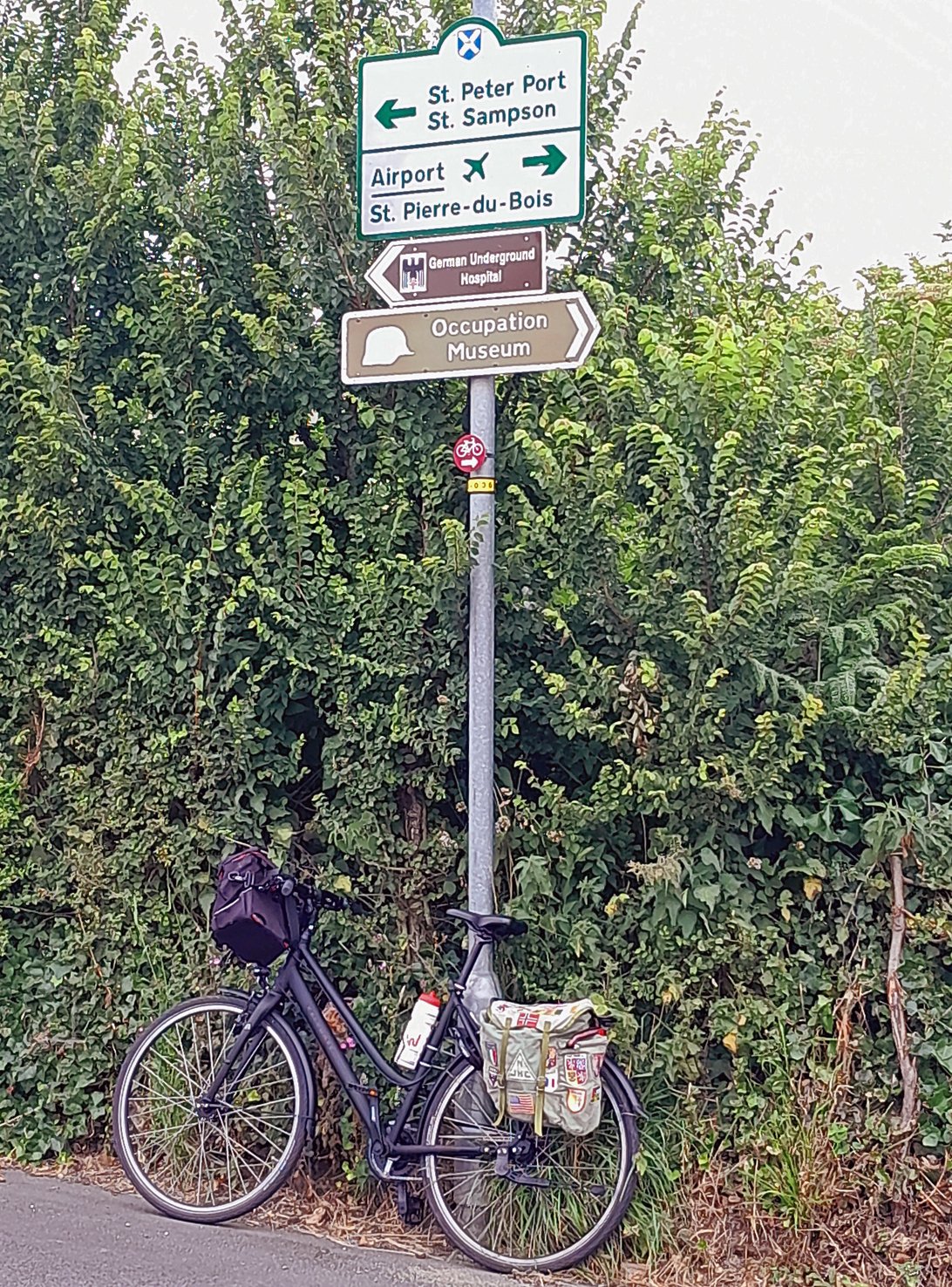 Er wordt zowel vanaf Groningen (Eelde) als vanaf Rotterdam gevlogen. Ik nam contact op met het hotel op Guernsey (met Nederlandse eigenaren) en zij verhuren wel fietsen. Ik ontving op Whatsapp een foto van de huurfiets. Een damesfiets! Geen heren. Na het bestuderen van de vorm van de fiets, besloot ik een Click-Fit houder van mijn stuurtas, de bidonhouder (die ik met tie-wraps aan de zadelbuis bevestigde), mijn eigen fietshelm, enz. mee te nemen. De huur kostte £ 15,-- per dag. Het fietszadel is door een soort hendelsysteem, zonder gereedschap, in hoogte verstelbaar.