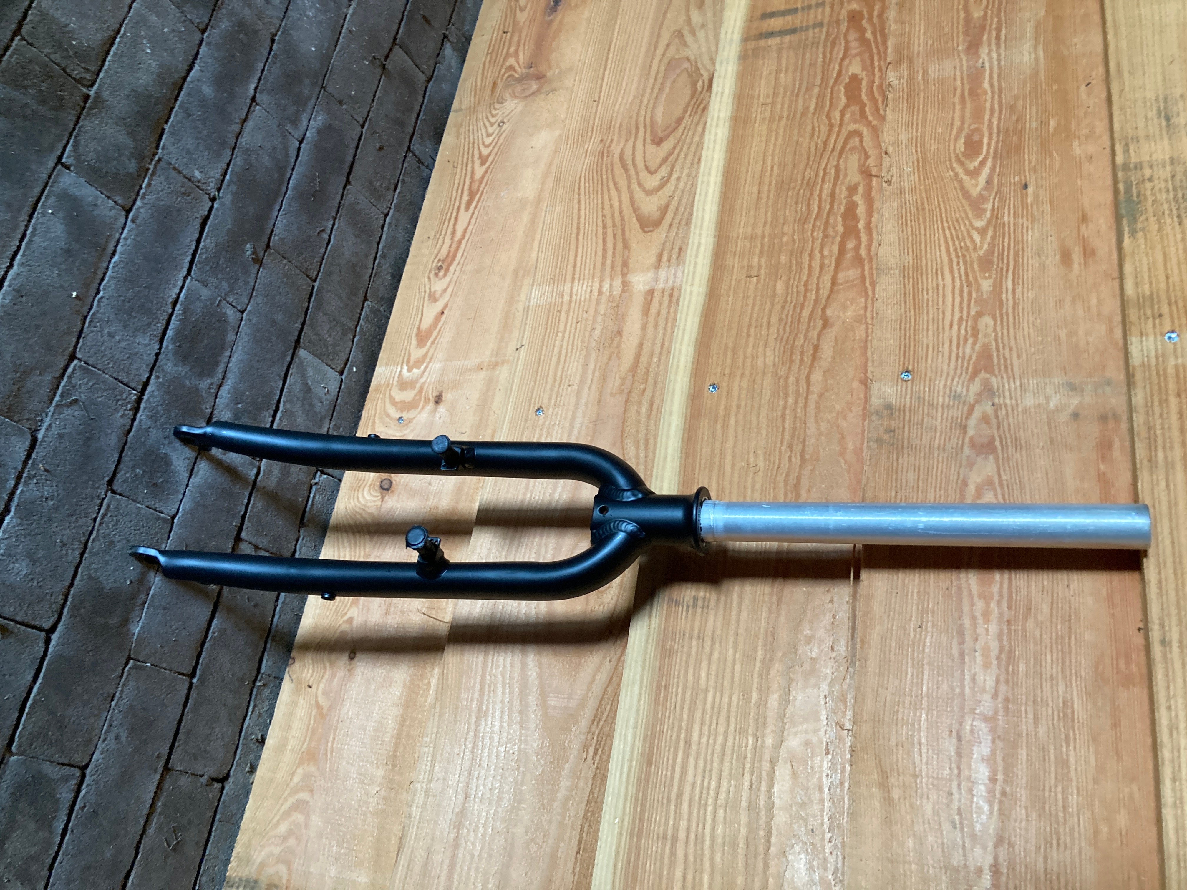 Wat denken jullie hier van? En heb al behoorlijk wat afgezocht voor een vork maar zonder resultaat. Kan hier een vaste voorvork in van een 90' MTB (Giant oid)? Waar moet ik op letten?