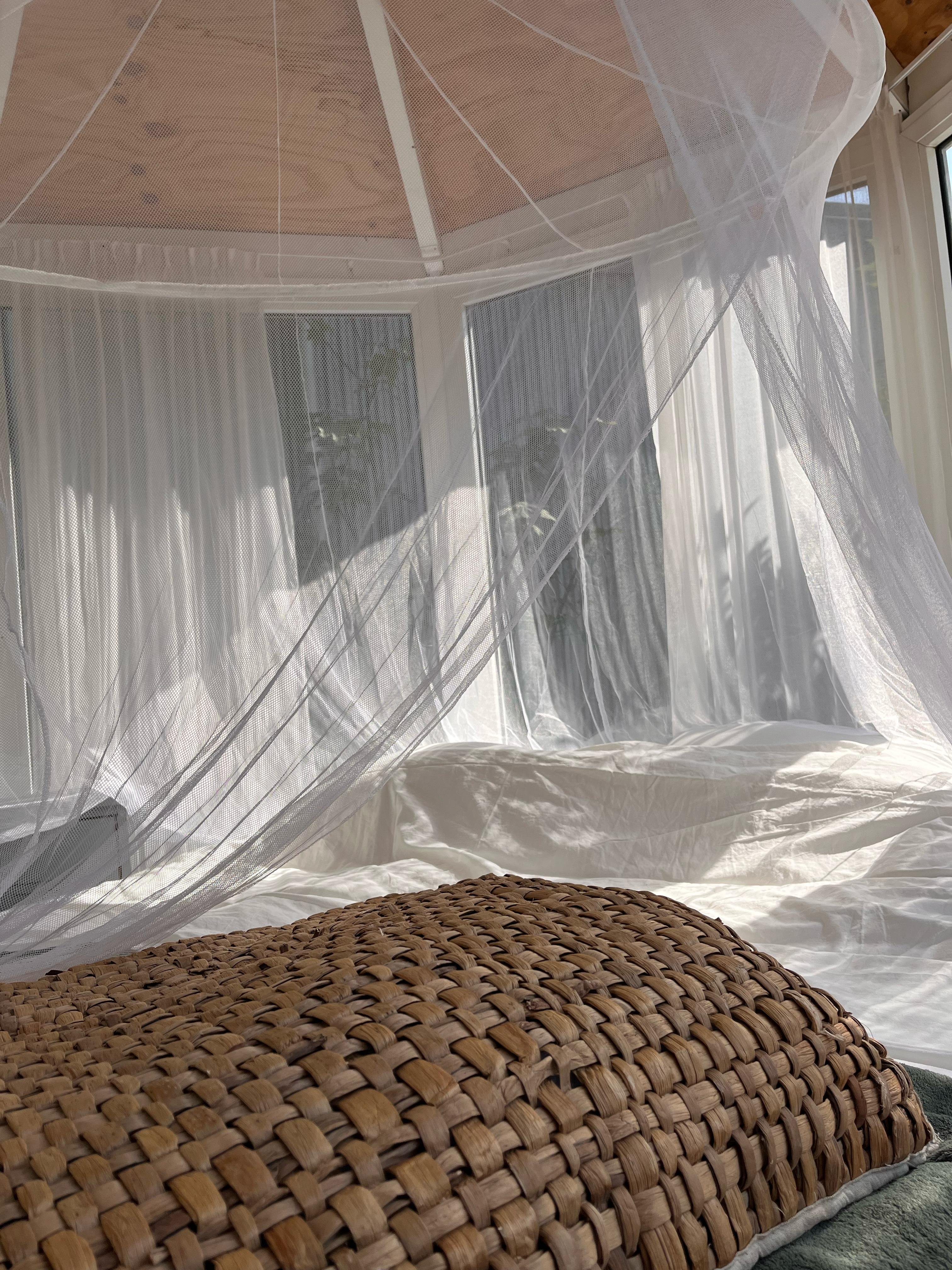 Buitenterrein: Gedeelde zitplekken, hangmatten en kampvuurplaats