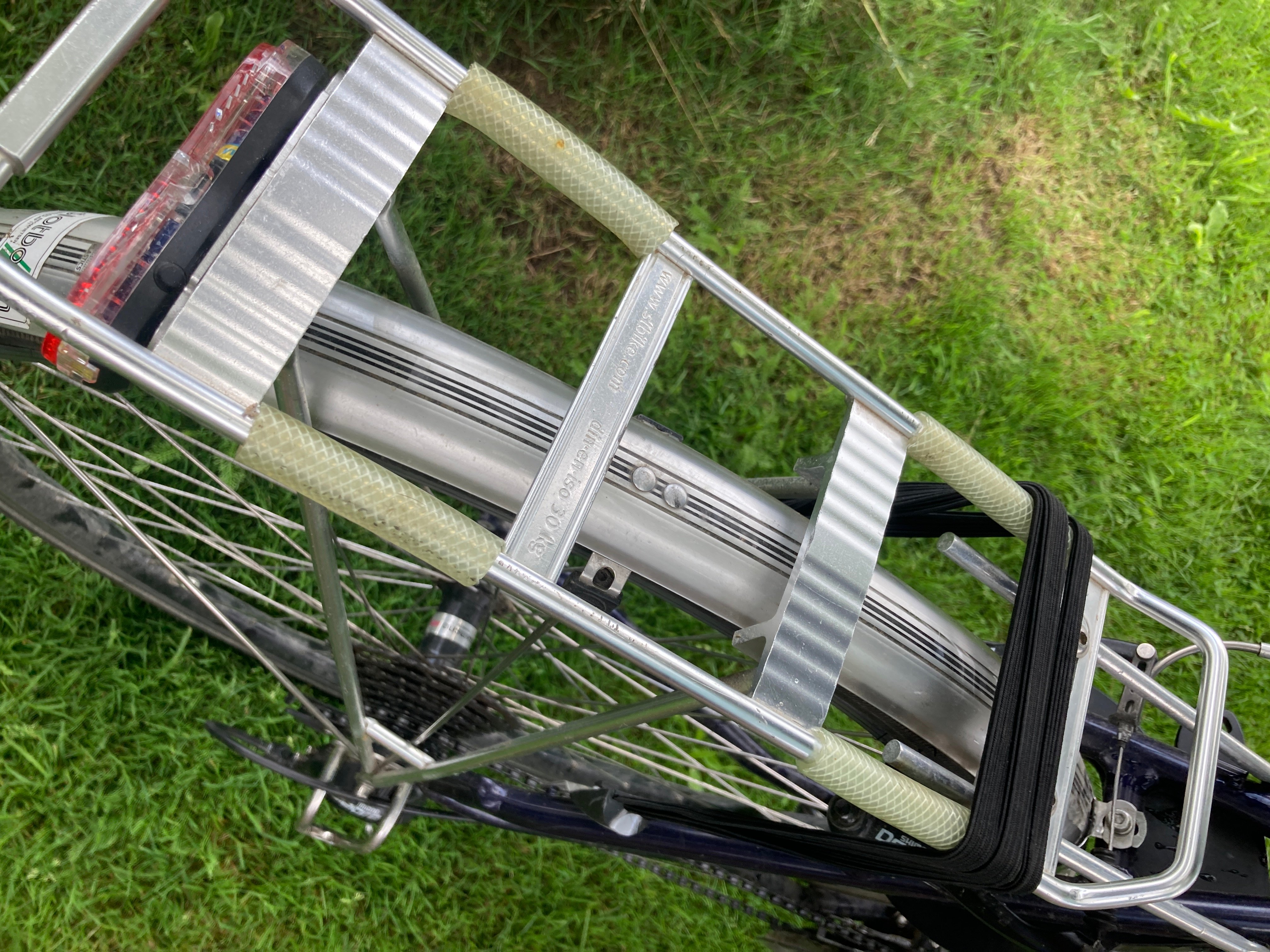 Echter, wilde dit weekend op pad dus voorlopig heb ik het zo gedaan (stukjes slang van een compressor): Werkt eigenlijk prima dus ms wordt het wel een blijvertje!