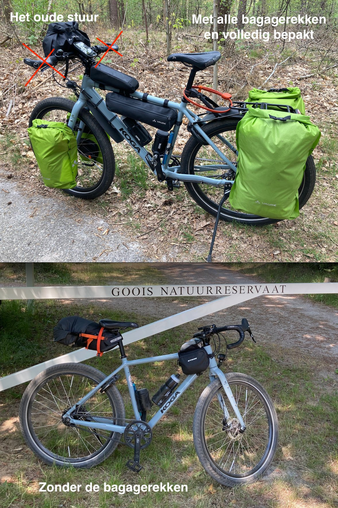 Let op, door de plek van de voorlamp past er geen grote bagagerol (handebar pack) die aan het stuur hangt. Of je zou de lamp naar een andere plek moeten verplaatsen.