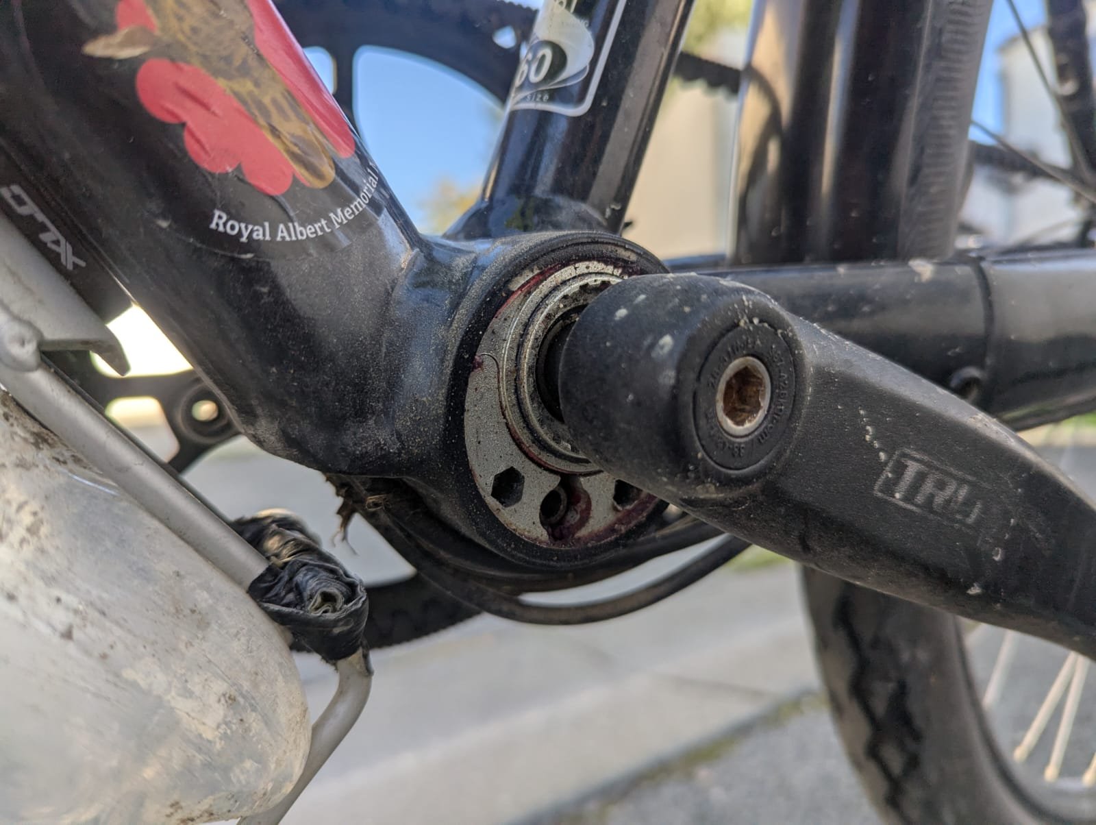 3. Na 300km begon het gekraak en dus weer spanning verloren, naar een engelse fietsen maker. blijkbaar zag het allemaal prima uit(Ik heb het niet gezien), hij heeft de trap as er uitgehaald schoon gemaakt en weer ingevet.