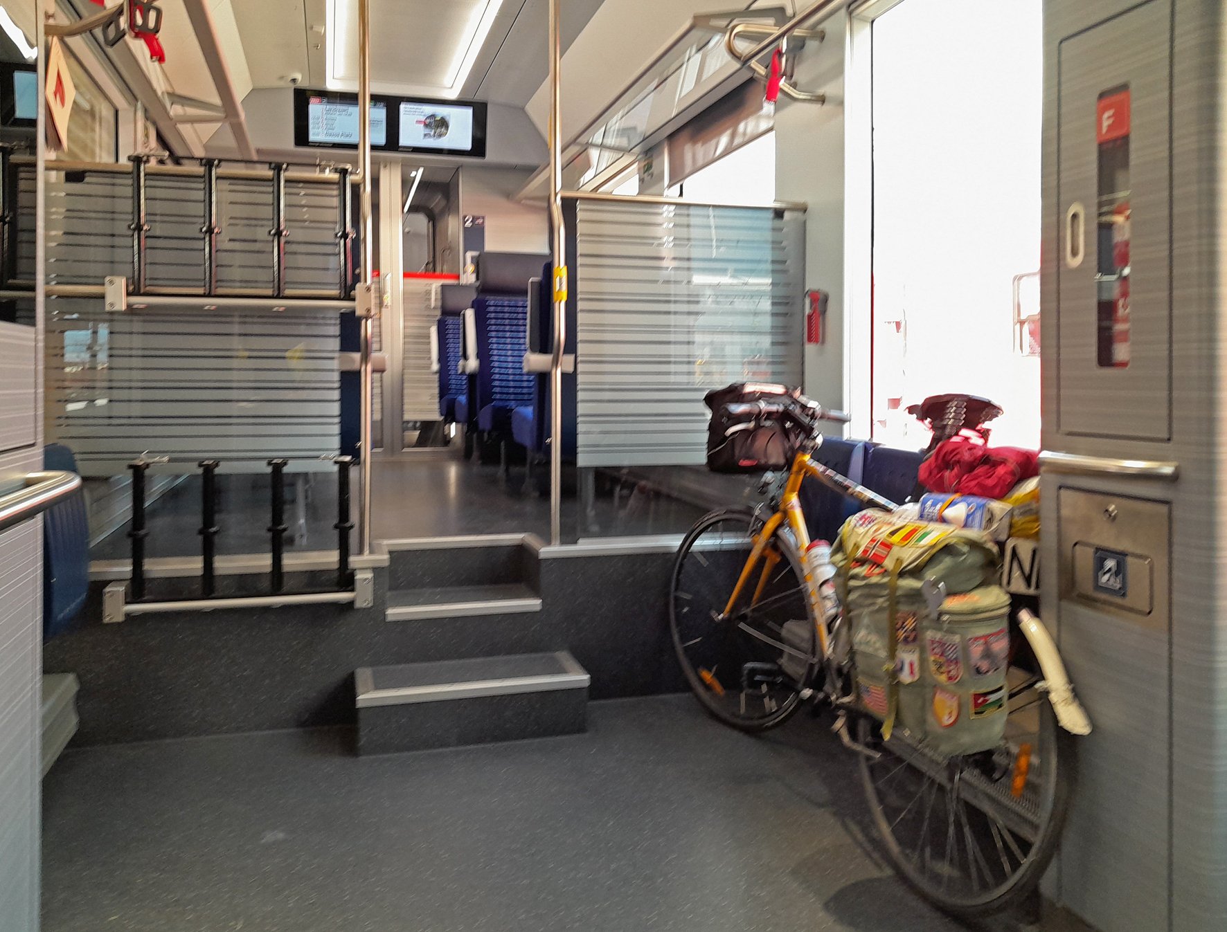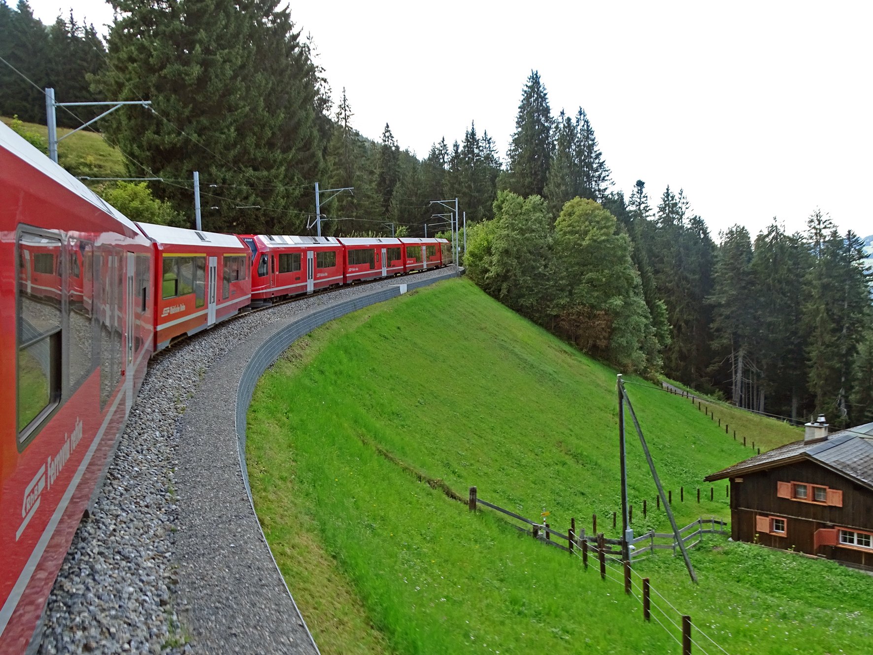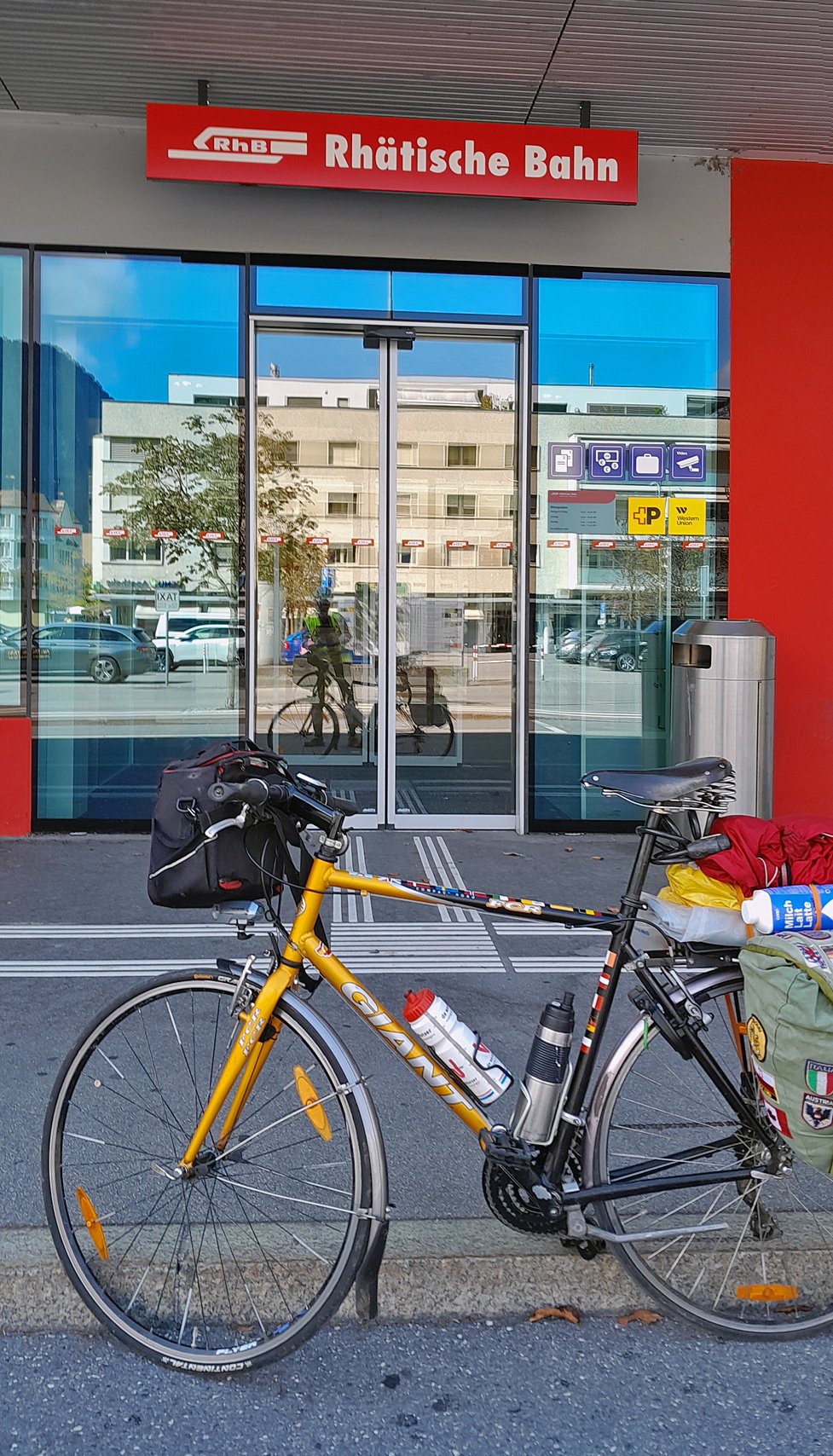 Er zijn per trein meerdere fietsplekken aanwezig. En in de winter natuurlijk voor de ski's. De Rhätische Bahn is een waar Mekka voor spoorwegliefhebbers. Sommige ramen zijn wel twee meter hoog voor mooie uitzichten op de berglandschappen. Andere ramen zijn naar beneden uitschuifbaar, zodat de treinfanaten naar buiten hangend, spectaculaire filmopnamen konden maken. De palen van de elektrische bovenleiding stonden op veilige afstand van de trein. Kwestie van je toestel goed vasthouden! Soms vraag ik me wel af of er ergens langs het grindbed van de rails verloren smartphones zouden liggen…. Toch wel een hele leuke belevenis.
